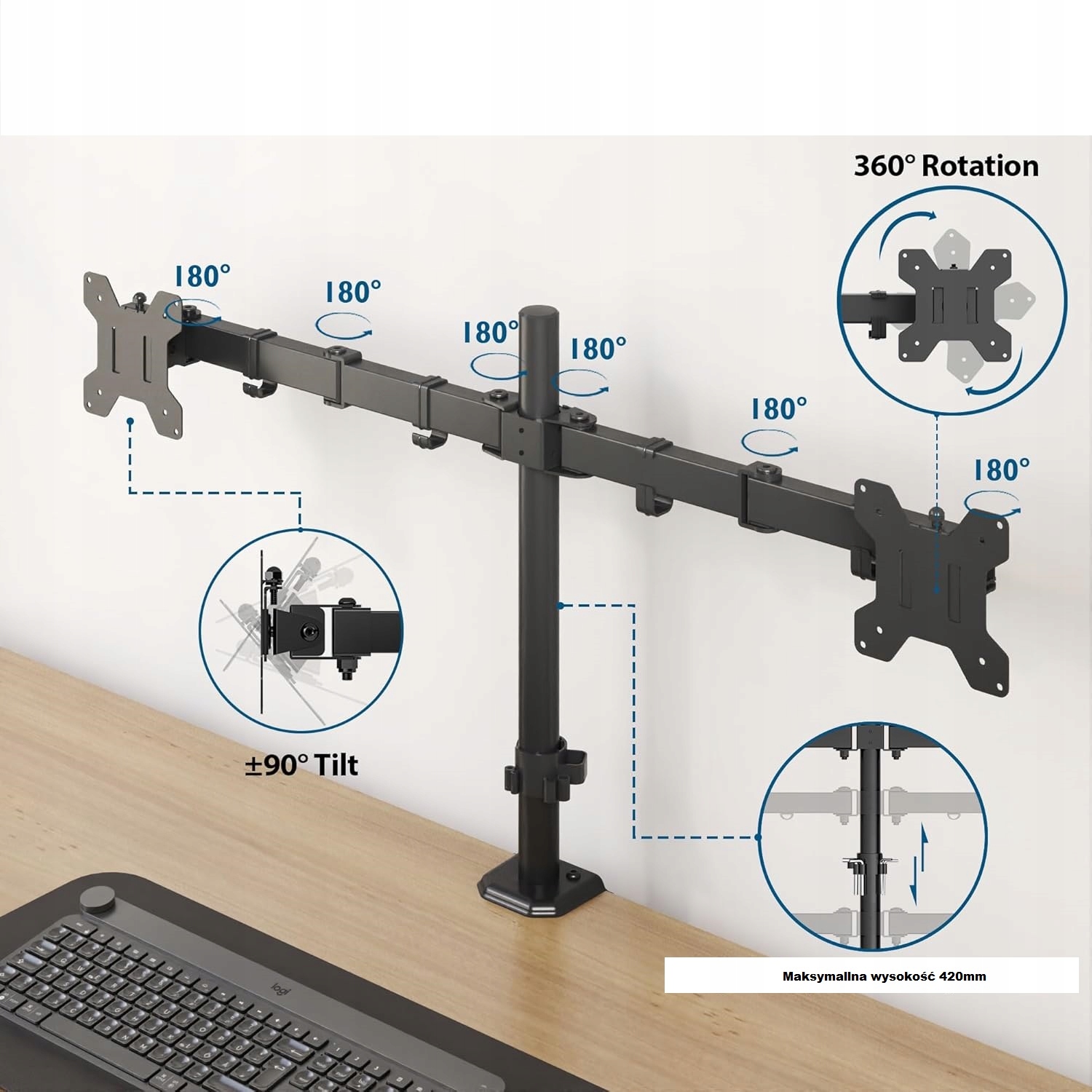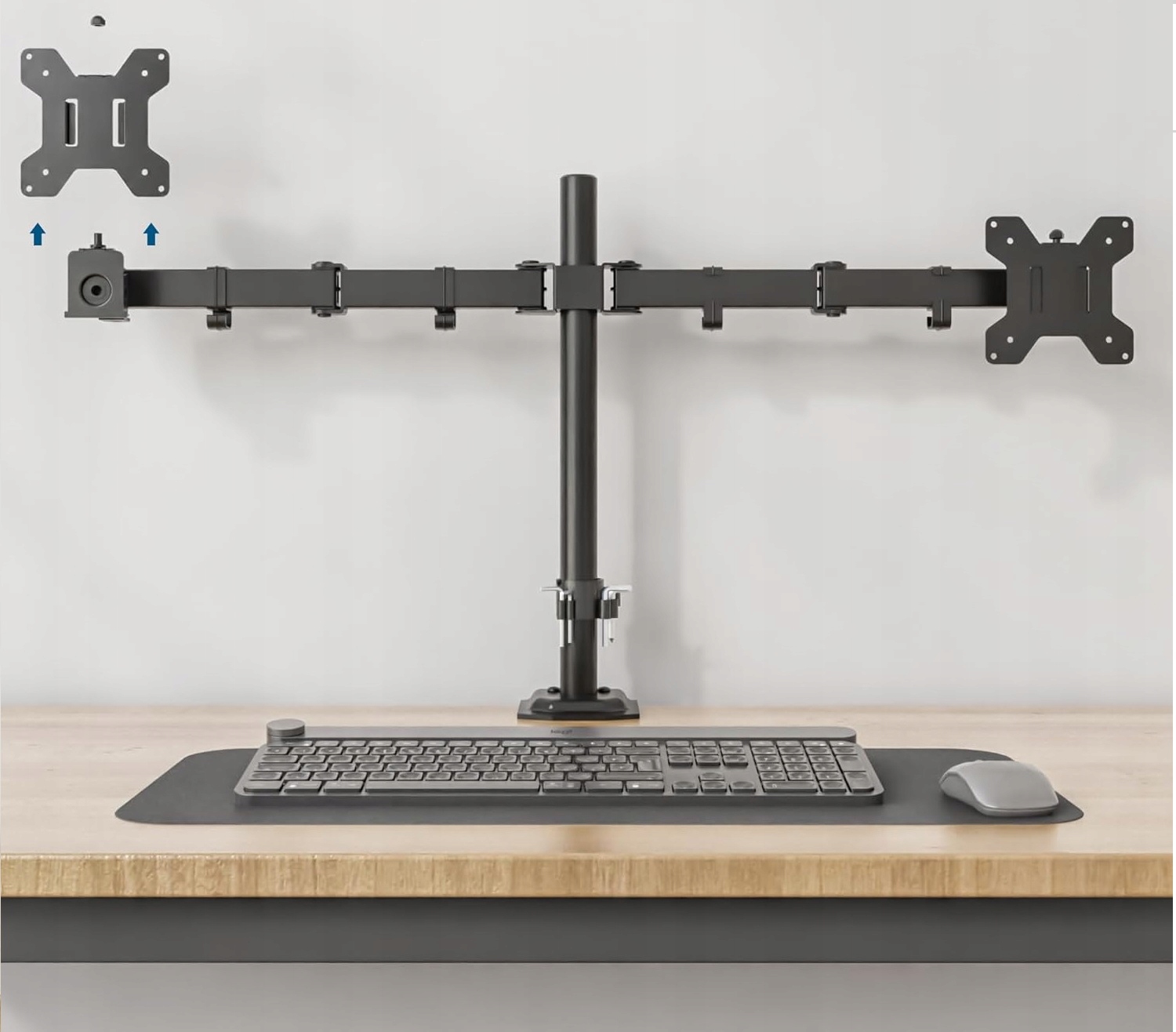 UCHWYT NA 2x MONITORY do monitorów do biurka VESA 10-27 cali REGULOWANY