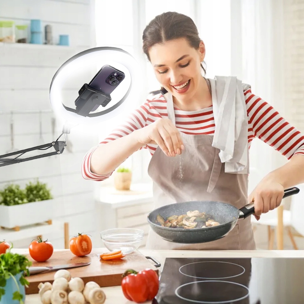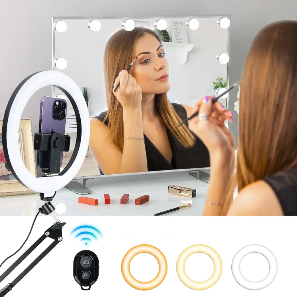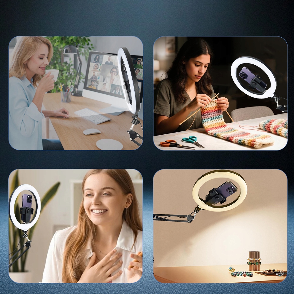 Ring Light розміщує ваш телефон у центрі кільця, забезпечуючи безперешкодне освітлення та відтворення відео без тіней. Навіть знімки крупним планом яскраві та рівномірні, що робить його ідеальним для детальних сцен, таких як уроки макіяжу та фотозйомка ювелірних виробів.