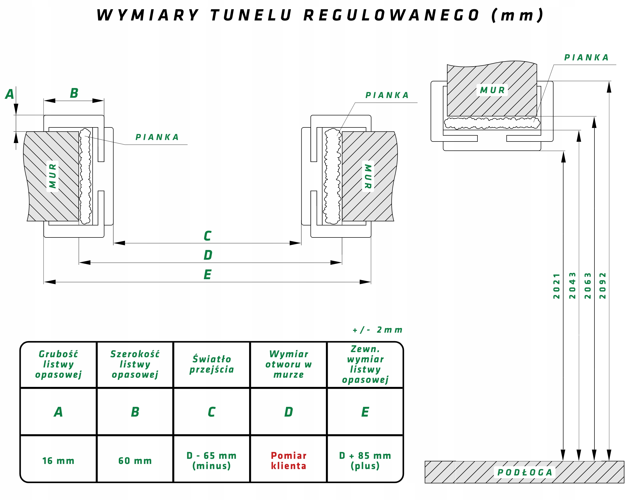 Тунелі виготовлені для окремого отвору в стіні з кріпленням вільний для піни приблизно. 1 см на сторінку (нижче малюнки та розміри).