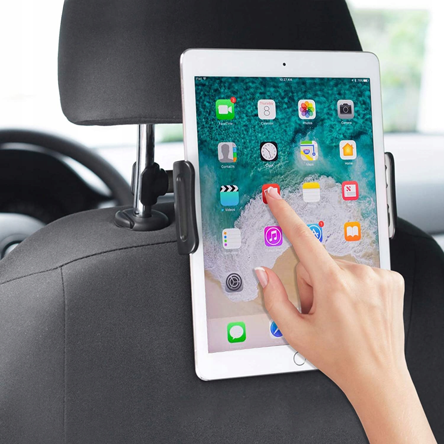 Ідеальні розваги на задньому сидінні: Цей власник автомобіля підголівника спеціально розроблений для підголівників автомобілів, нехай дитина чи інші пасажири гратимуть ззаду під час руху на великі відстані. Ідеально підходить для пасажирів, що сидять ззаду, переглядаючи фільми, читаючи електронні книги, грають у ігри тощо. -10.6 Таблетки для iPad Air/iPad Air 2/iPad/iPad Mini 2 3 4/iPad Pro 9.7 10.5, Kindle Fire HD, Google Nexus, теги Nokia, erader, планшет Huawei PC, Nintendo Switch, Asus Zenpad, Samsung Estables і All Мобільні телефони 4, 5 "-8" тощо відповідають підголівнику, а ширина між двома металевими стовпами становить 4,7 в 5,9 дюйма. Підголівник обертальний кульковий з'єднання з 360 градусами з механізмом нахилу, ідеально підходить як для вертикальної, так і для горизонтальної орієнтації. Повернення під багатьма кутами дозволяє багато різних параметрів позиції отримати найкращий кут перегляду, який ви очікуєте. Сильна і гнучка рука може легко розтягуватися до максимум 10,6 дюйма, забезпечує більш близький перегляд відео, полегшує життя. Механічна конструкція перемикача може бути твердою, щоб планшет. М'яка губка захищає обладнання від вібрацій та подряпин і зміцнює тертя між ними, забезпечуючи краще зчеплення і може витримати розпушування та падіння, не хвилюйтеся, ви можете насолоджуватися фільмом чи фільмом під час подорожі на машині.