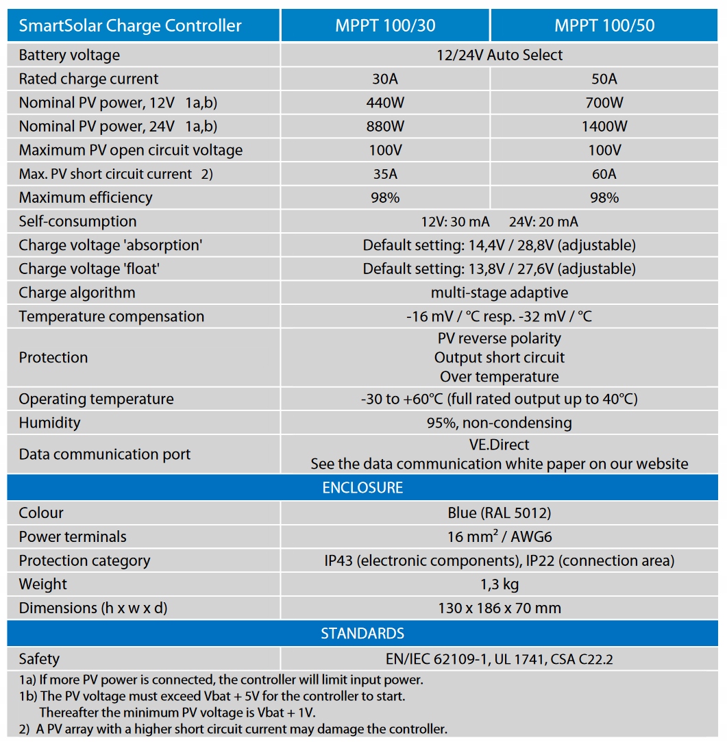 Сонячний зарядний пристрій збирає енергію від фотоелектричних панелей і зберігає її в батареях. Використовуючи новітню та найшвидшу технологію, зарядний пристрій SmartSolar максимізує кількість отриманої енергії та розумно передає її, щоб повністю зарядити акумулятори за найкоротший час. SmartSolar підтримує акумулятор у хорошому стані, подовжуючи термін його служби.