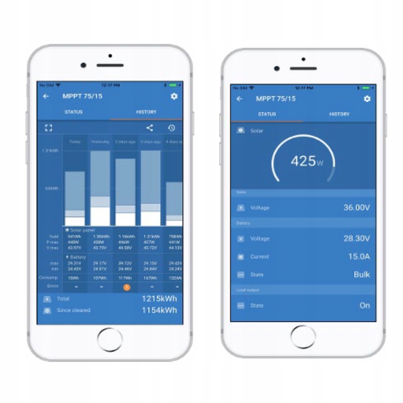 Дистанційно керуйте та контролюйте функції зарядного пристрою MPPT SmartSolar із вбудованим Bluetooth, підключивши його до свого смартфона чи іншого пристрою через VictronConnect. Якщо ваша установка підключена до Інтернету через пристрій GX, портал віддаленого керування Victron (VRM) надає вам доступ до всіх функцій вашого MPPT у будь-який час і з будь-якої точки світу; VictronConnect і VRM можна використовувати безкоштовно. Для віддаленого встановлення – навіть якщо немає доступу до Інтернету, ви все одно можете контролювати MPPT, підключивши пристрій GlobalLink 520.