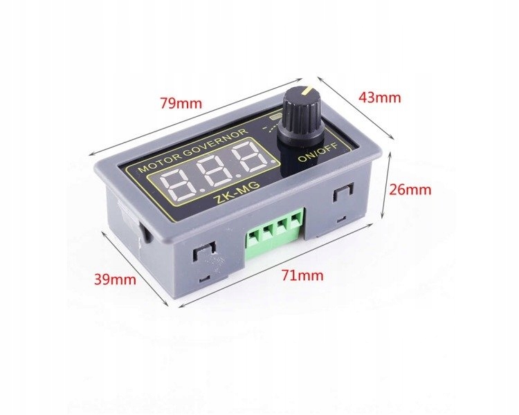 Регулювання здійснюється за допомогою потенціометра, усередині якого є перемикач, тому немає необхідності використовувати додатковий перемикач перед система. Система має плавний старт, що означає, що після включення двигуна він повільно розганяється до заданого значення. Все це укладено в стандартний корпус 5135, готовий до встановлення. Контролер оснащений світлодіодним діодом, який сигналізує про його роботу.
