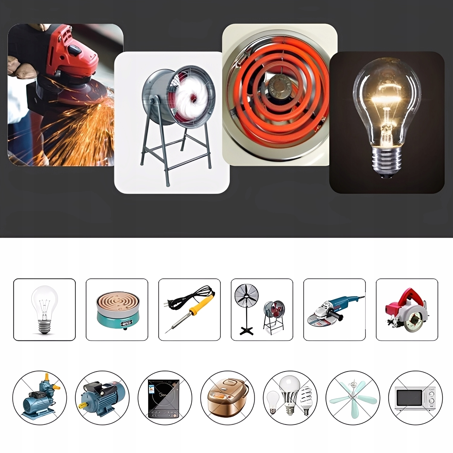 4000 Вт — це гранична потужність резистивного навантаження, яка застосовується, наприклад, до вольфрамових лампочок, нагрівачів і паяльників, тобто для регулювання світла та температури, для індуктивного навантаження, напр. регулювання швидкості обертання, гранична потужність має бути 2000 Вт.