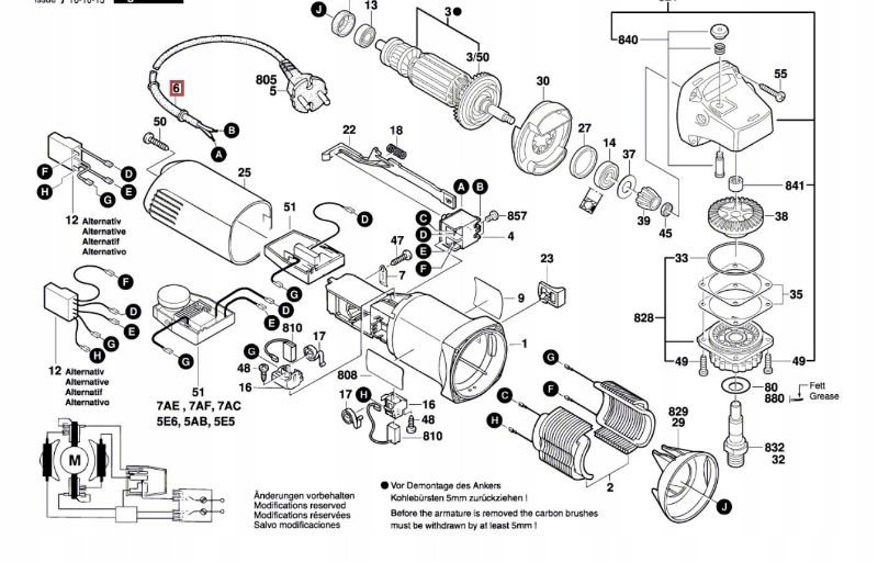 Цей конденсатор (фільтр перешкод) слід від'єднати від шліфувальної машини, тому що наш регулятор підключено, як № 51 7AE, 7AF, (...) тобто: дріт G йде до статора, а D і E до середніх контактів перемикача.