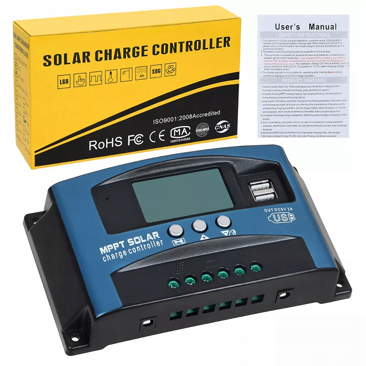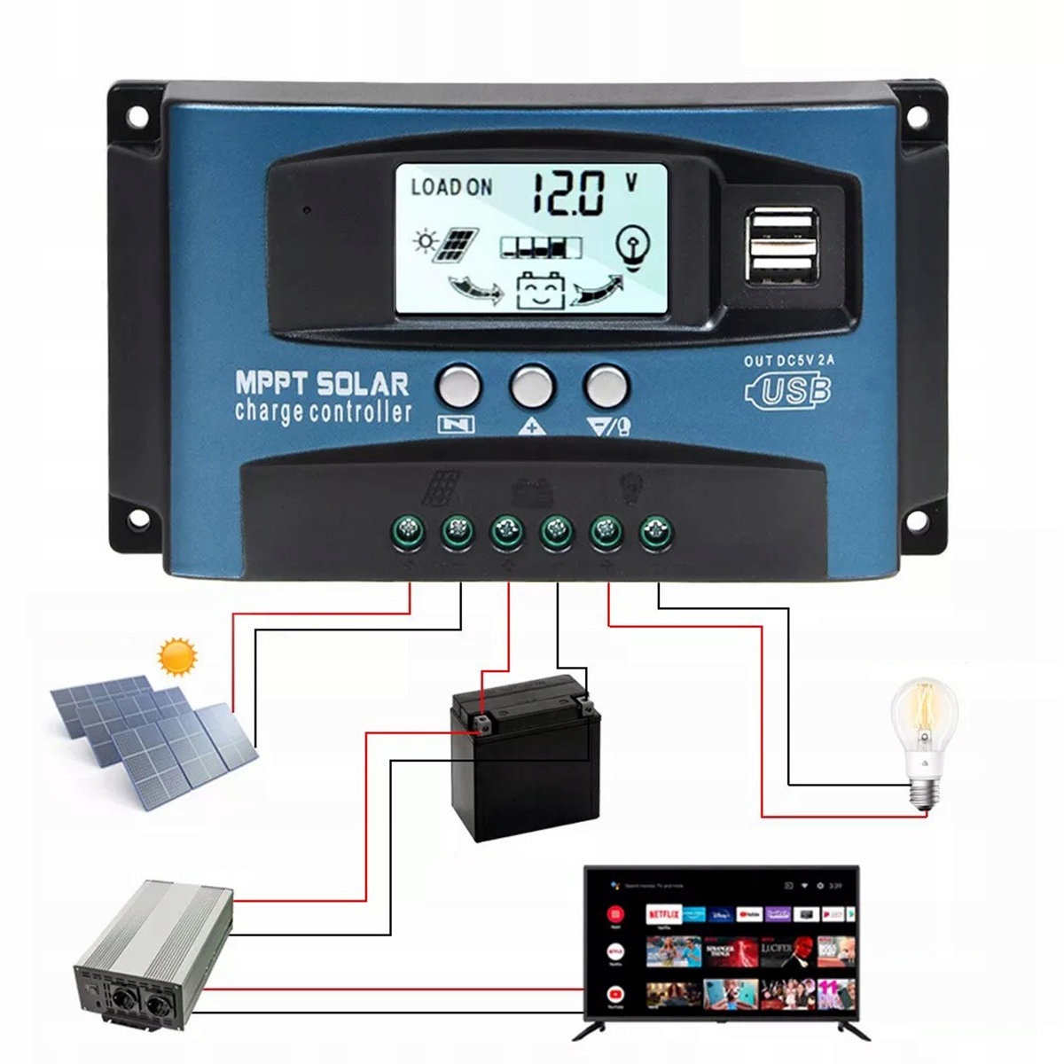 100A12V-24V MPPT Сонячний зарядний пристрій панель Daul USB-контролер цифровий РК-дисплей