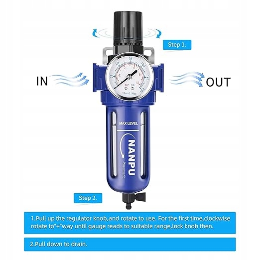 - Регулятор фільтра стисненого повітря 1/2" BSP - очищає та осушує повітря, точне регулювання тиску. >