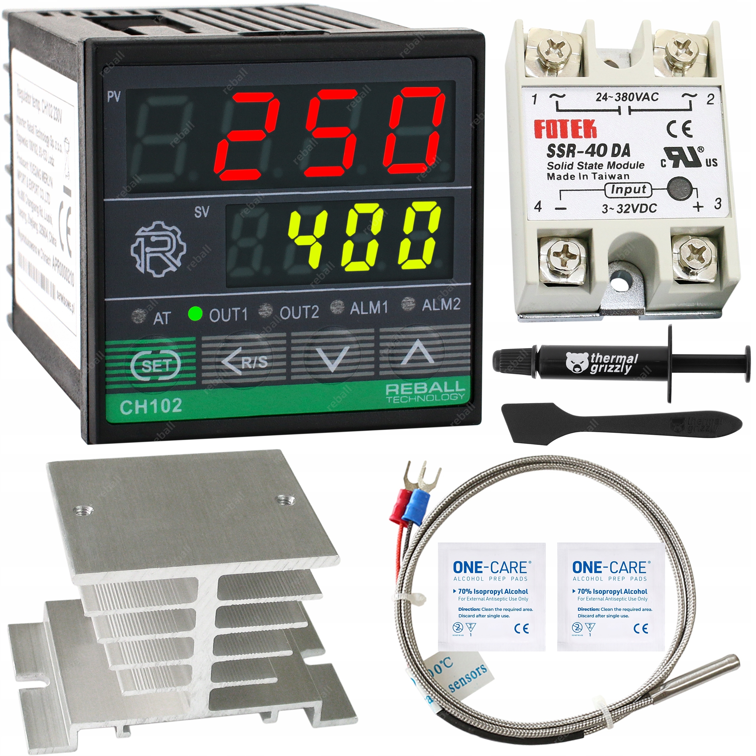 РЕГУЛЯТОР ТЕМПЕРАТУРИ CH102 КОНТРОЛЕР 1800°C SSR 40A ДАТЧИК РАДІАТОРНА ПАСТА
