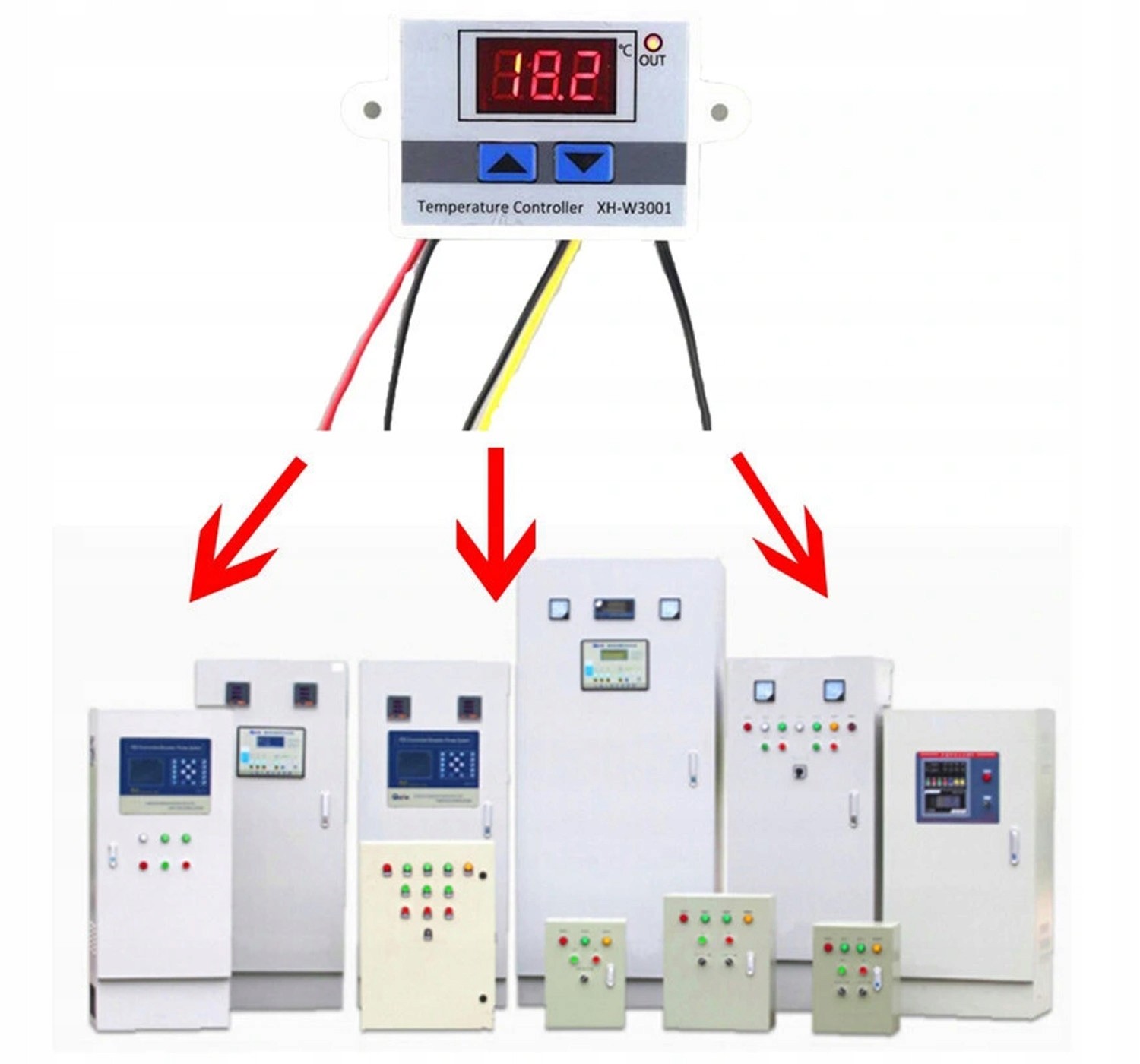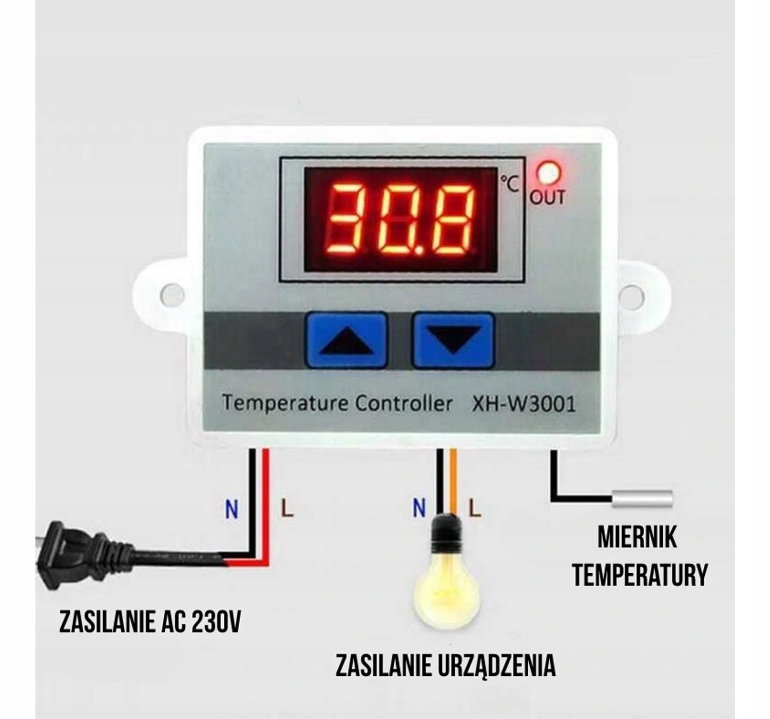 - контролер - після встановлення відповідних значень температури на контролері пристрій самостійно вмикає або вимикає підключений пристрій, що живиться 230 В з максимальною потужністю 1,5 кВт