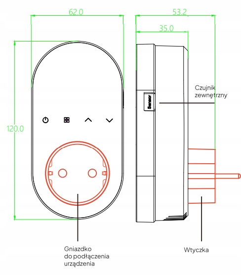 Термостат Socket Hornisse - це сучасний інтелектуальний пристрій для керування температурою вдома . Терморегулятор є ідеальним рішенням для взаємодії з електричними обігрівачами, системами охолодження та інфрачервоними обігрівачами. Завдяки вбудованому WiFi модулю терморегулятор дозволяє дистанційно контролювати температуру за допомогою мобільного додатку Tuya Smart, що забезпечує комфорт і економію енергії без необхідності фізичного доступу до пристрою.
