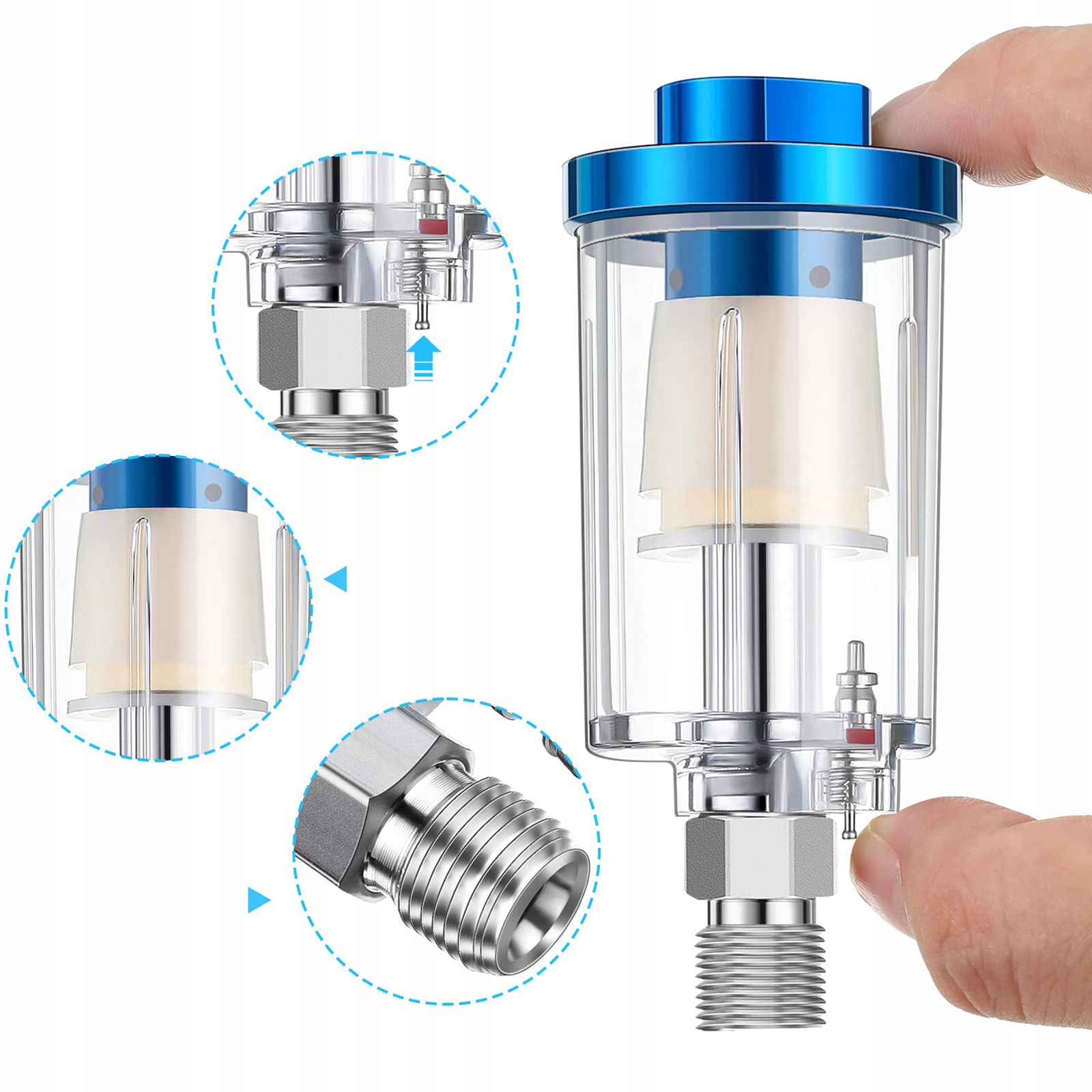 Функція: ефективно фільтрує воду, масло, накип і частки в лініях стисненого повітря. Запобігає потраплянню забруднень у фарбу. Забезпечує найкращий ефект фарбування за допомогою пістолетів-розпилювачів.