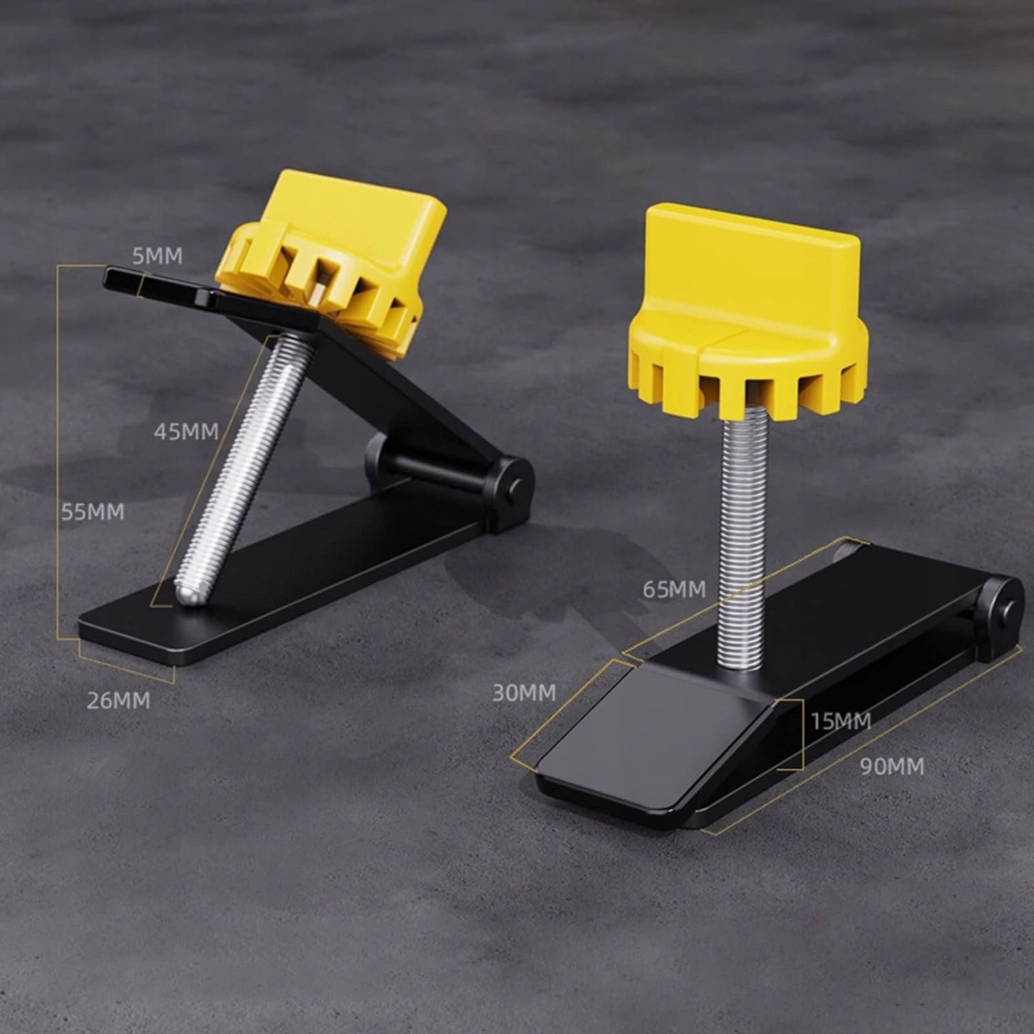 Цей регулятор висоти забезпечує точне регулювання висоти, і дуже зручно регулювати висоту, повертаючи гайку. Він легкий, його зручно носити і не займає багато місця. Виготовляється з високоякісної нержавіючої сталі, марганцевої сталі, пластику, гуми, довжина даного виробу становить 90 мм, ширина 26 мм і висота 15 мм. Завдяки передньому кінці регулятора висоти, він був розроблений з гумовим покриттям для захисту пластин від ударів. Він використовує принцип механіки точки опори з високою несучою здатністю та безпечним використанням. Легко транспортувати, підходить для скляних дверних плиток. Завдяки нашому локатору вирівнювання ви можете швидко та ідеально переконатися, що плитка залишається стабільною на стіні. Регульована по висоті настінна панель, проста у використанні та довговічна. Висоту легко регулювати обертанням гайки.