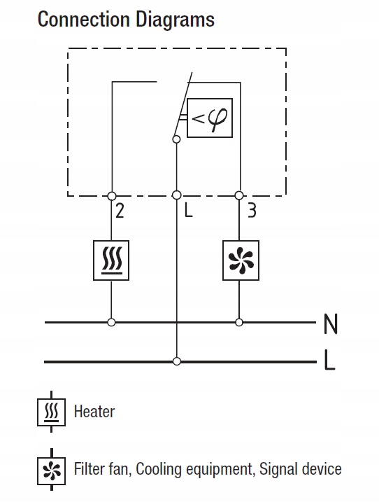 Гігрост вимірює відносну вологість у корпусах, що містять електричні та електронні компоненти. Після перевищення встановленого порогу відносної вологості система нагріву вмикається, що запобігає конденсату, запобігає всередині корпусу.