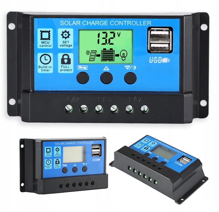 ⭐ Сонячний регулятор і контролер заряду для фотоелектричних панелей 12/24V з РК-дисплеєм і USB-портами.