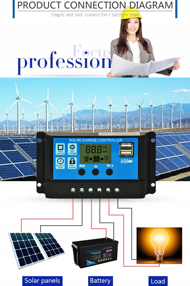 Що хорошого можете сказати про такий регулятор? Це дешево. Ми не будемо брехати, це не той продукт, який ми рекомендуємо. Іноді когось цікавить ціна, іноді якість. З цим часто важко примиритися. У цьому випадку це точно не спрацювало. Звичайно, на виріб є гарантія, але вона поширюється лише на виріб, а не на наслідки, викликані його неправильною роботою. Має дисплей і USB-порти. Ви повинні відповісти на запитання, чи варто економити 30 злотих на регуляторі, щоб ризикувати втратами через пошкодження акумуляторів, які коштують набагато більше.