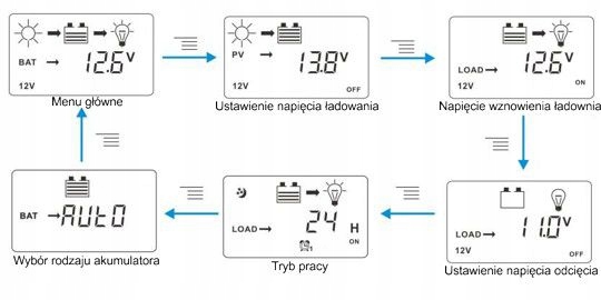 Цей контролер має функцію тимчасового контролю навантаження , наприклад, ви можете встановити час, протягом якого навантаження буде ввімкнено після заходу сонця. >