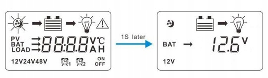 1,2. Символ нічного/денного режиму роботи. Якщо напруга панелі підвищується, вона переходить у денний режим