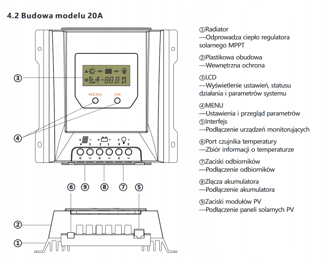 Сонячний регулятор Регулятор SOL MPPT 20A призначений для заряджання акумуляторів від підключеного набору сонячних панелей. Цей сучасний і багатофункціональний пристрій заряджається на основі новітньої та найефективнішої технології зарядки MPPT.