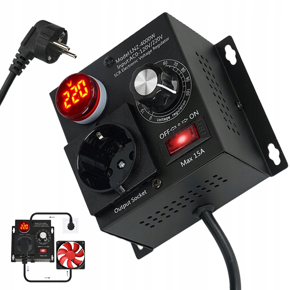🌆-Призначенийдля регулювання напруги в діапазоні 10-220 В з максимальною вихідною потужністю до 4000 Вт. Він особливо оптимізований для безперервного регулювання швидкості електроінструментів (зверніть увагу, що він не підходить для пристроїв з ємнісним навантаженням без функцій зниження напруги та швидкості, а також для насоси та безщіточні двигуни).
