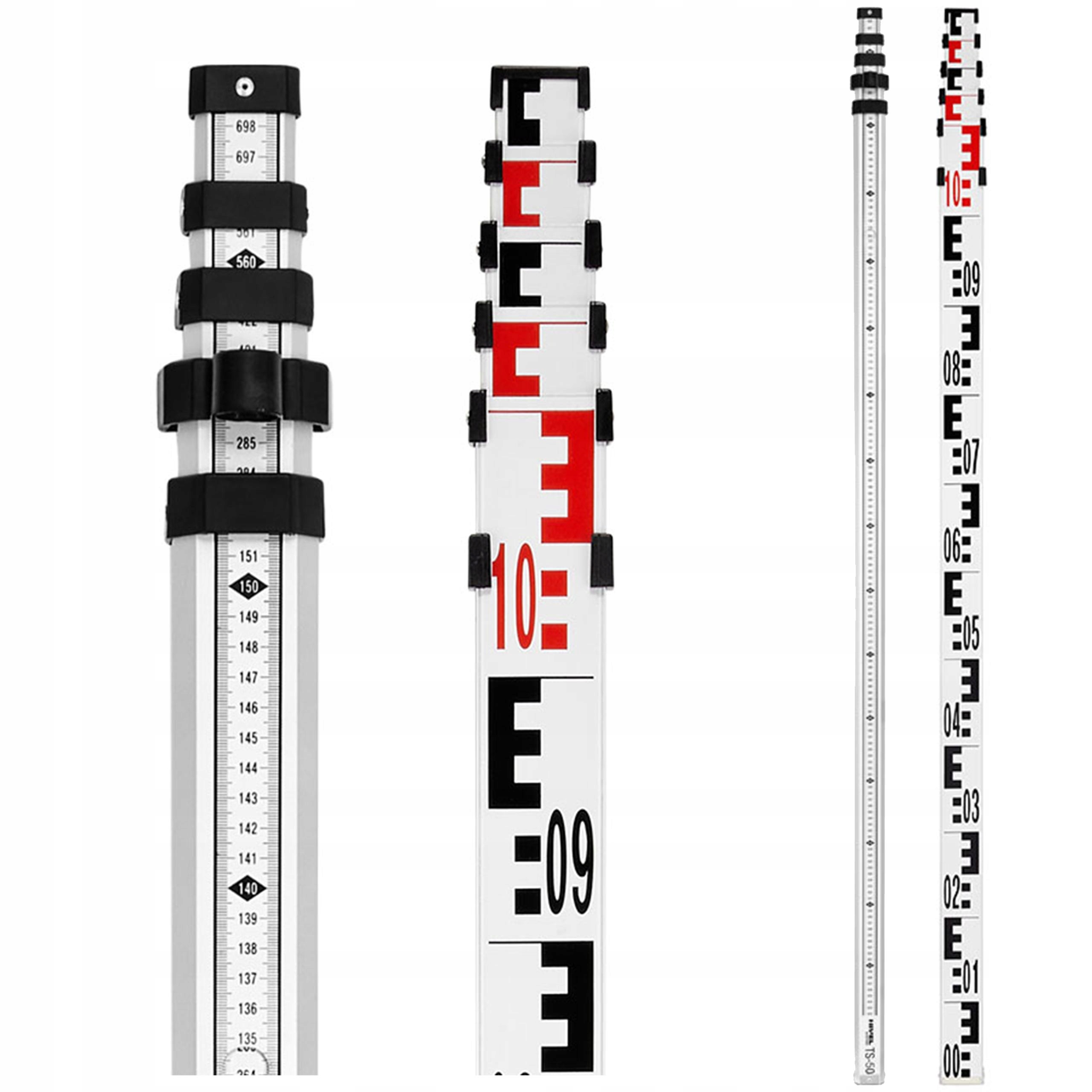 - Для різних завдань - інварні рейки для точного нівелювання, дерев'яні рейки для точного нівелювання контрольних точок, алюмінієві та склопластикові рейки з описом типу "E" з одного боку та міліметровою шкалою з іншого боку, для швидкого нівелювання на будівництві, спеціальні рейки для взаємодії з лазерними рівнями, довжина від 2,4 м до 7 м - на вибір, в залежності від кольору!