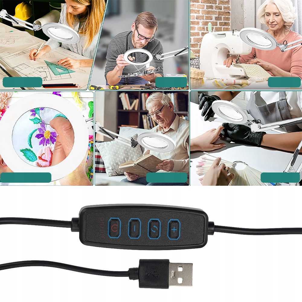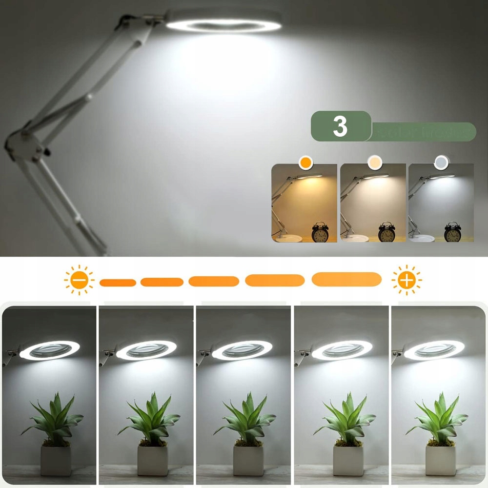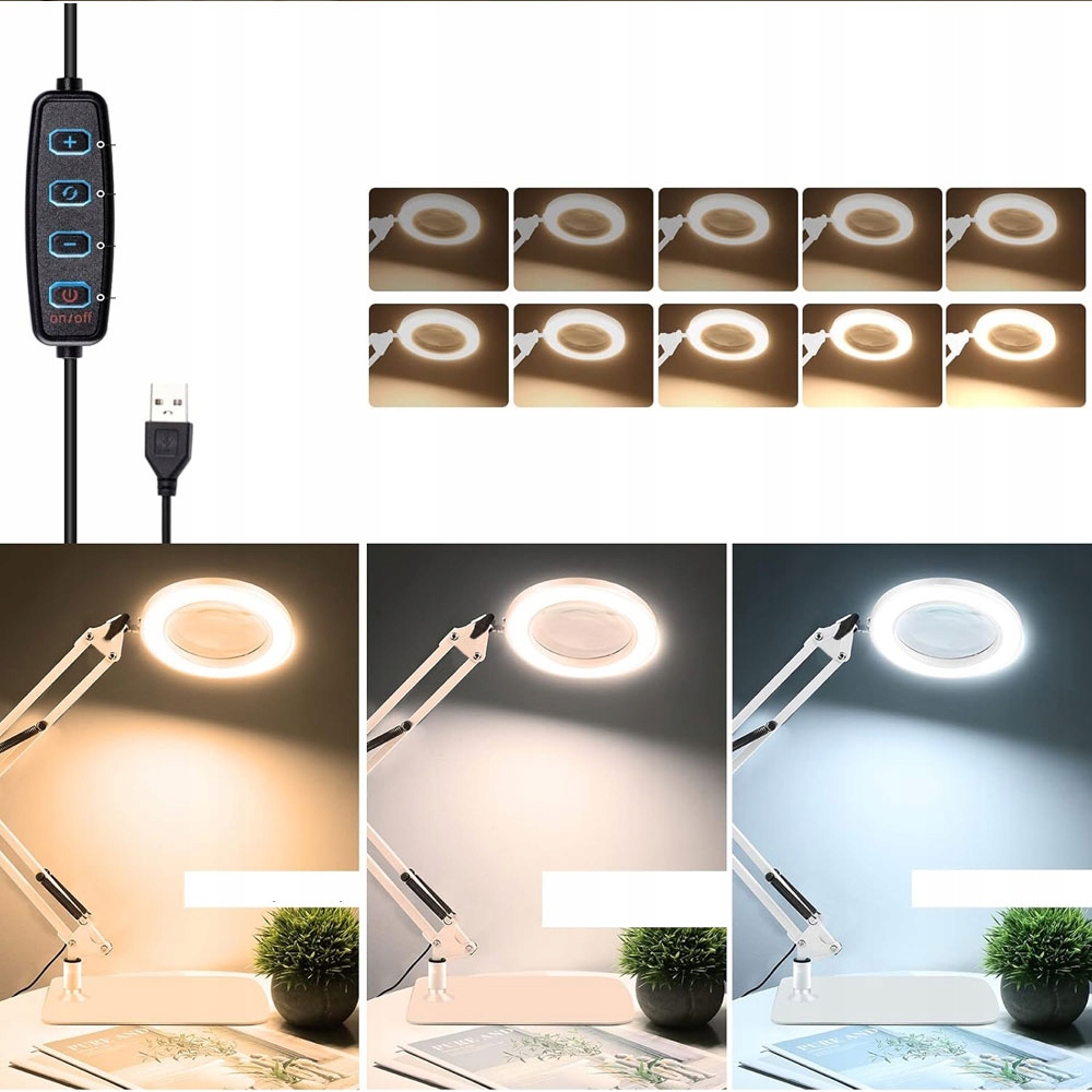 🌟3 колірні температури та регульоване освітлення:Лупа оснащена 72 світлодіодами, що живляться від USB-кабелю, що входить у комплект. Примітка: продукт не включає адаптер. 3 колірні температури (біле світло, біле і тепле світло, тепле світло) - кожен режим пропонує 10-рівневе регулювання яскравості. Виберіть відповідне освітлення відповідно до потреб навколишнього середовища, щоб досягти ідеального освітлення та зменшити дискомфорт для очей.