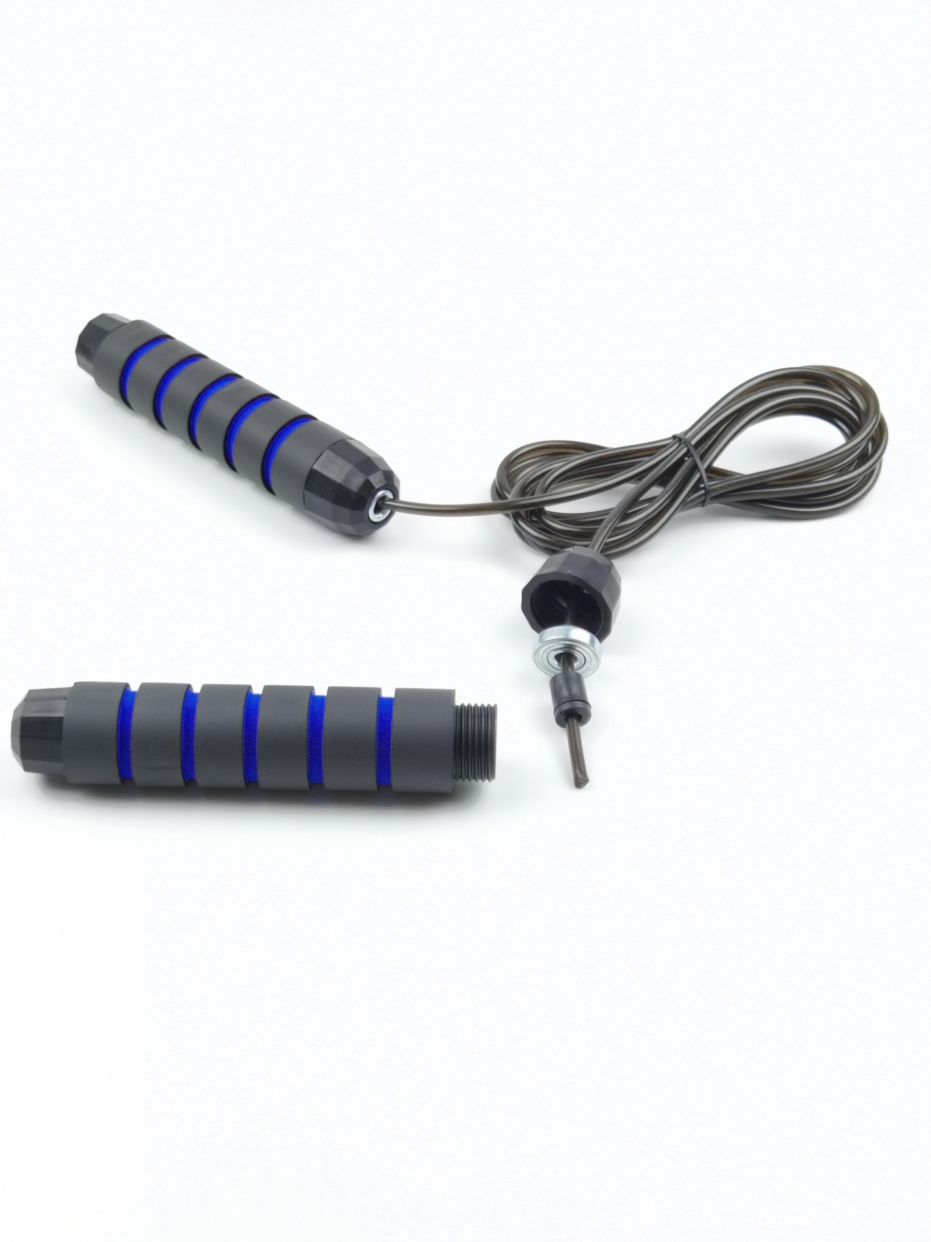 Скакалка оснащена металевим підшипником, який забезпечує плавне і безпроблемне обертання скакалки. Завдяки цьому скакалка не заплутується і не ускладнює стрибки, що дозволяє проводити ефективні та ефективні тренування.
