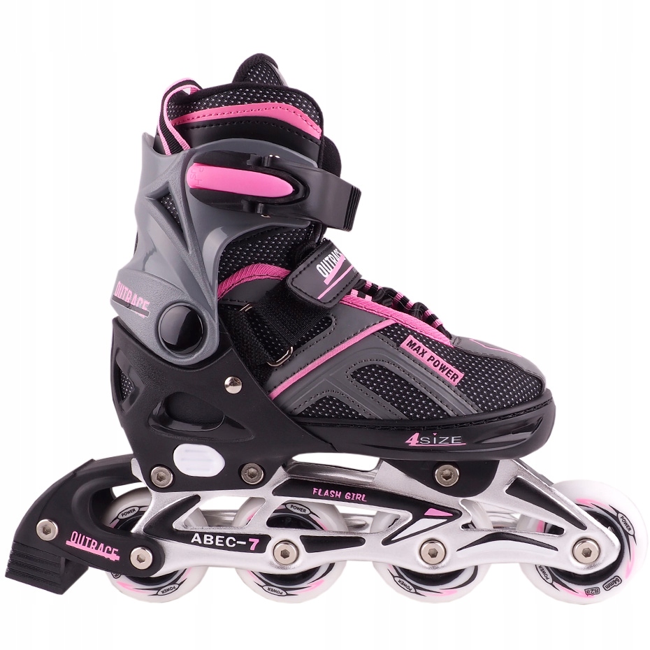 Представлені роликові ковзани Outrace сіро-рожевого кольору - це продукт як для дітей, так і для підлітків. Сучасний дизайн робить їх абсолютним бестселером у нашому спортивному магазині. Роликові ковзани призначені як для новачків, так і для людей, які раніше стикалися з цим видом діяльності. Вони використовуються для любительської їзди і дозволяють досягти середніх швидкостей. Виготовлені з високоякісних матеріалів, які адаптуються до стопи та забезпечують достатню вентиляцію. Взуття виготовлено з міцного пластику і має 3-х ступінчасту застібку - пряжка, шнурівка і липучка. Ця система захищає від випадкового розстібання і, як наслідок, падіння. Змінити розмір дуже просто. Це робиться лише однією кнопкою.