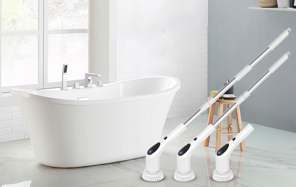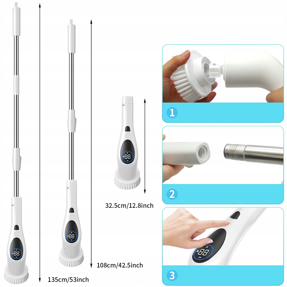 💧 Наша електрична щітка для чищення повністю водонепроникна, тож може працювати у воді протягом тривалого часу, не завдаючи жодних пошкоджень, що робить його ідеальним для чищення ванн, душових кабін і плитки у ванних кімнатах. Бездротова конструкція означає, що шнур не заважає прибиранню у важкодоступних місцях.