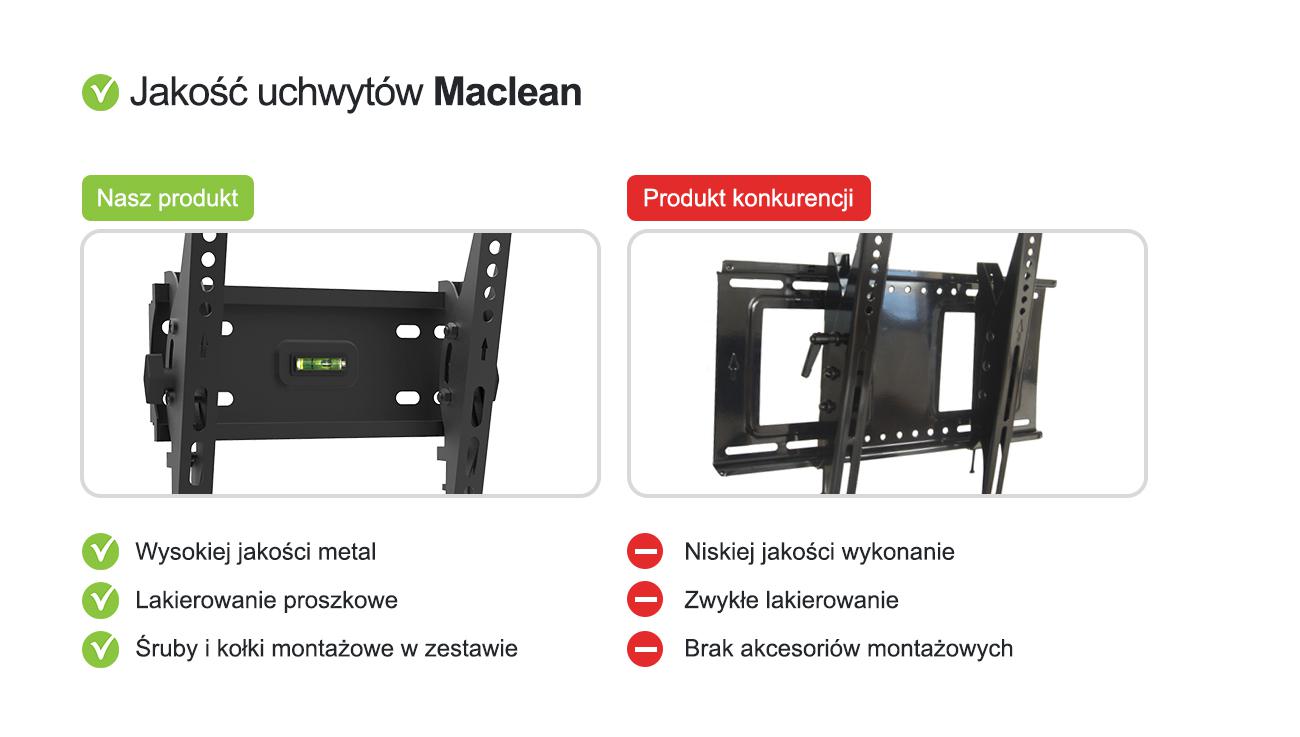 Компанія Maclean Brackets є найбільшим імпортером/виробником LCD/LED/PLASMA кронштейнів у Польщі. Усі ручки, які ми продаємо, відрізняються високою якістю, сучасним дизайном і довговічністю завдяки використанню матеріалів найвищої якості.