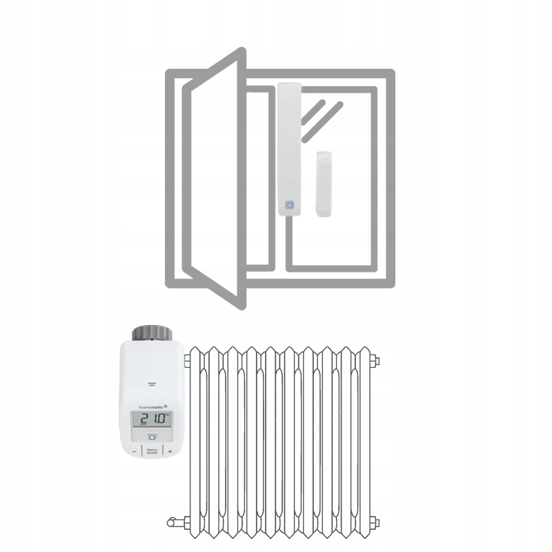 в автономному наборі для регулювання нагрівання (HMIP-SK9) у поєднанні з бездротовим термостатичним головкою базового (HMIP-MetV-B), виконує функцію магнітного контакту, що стосується відкриття вікна Інформація, а термостатична головка автоматично зменшує подачу гарячої води до радіатора. Коли вікно закриється, радіатор знову почне підвищувати кімнатну температуру. Кондиціонер, безпека та інші функції комплексного рішення домашнього будинку розумного будинку.