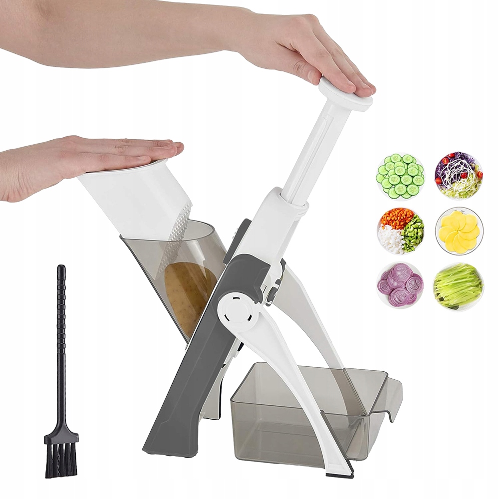✅ Овочерізка має компактну конструкцію, її невеликі розміри займають мало місця в шафі та Щітка, що входить у комплект, легко видалить бруд із леза.