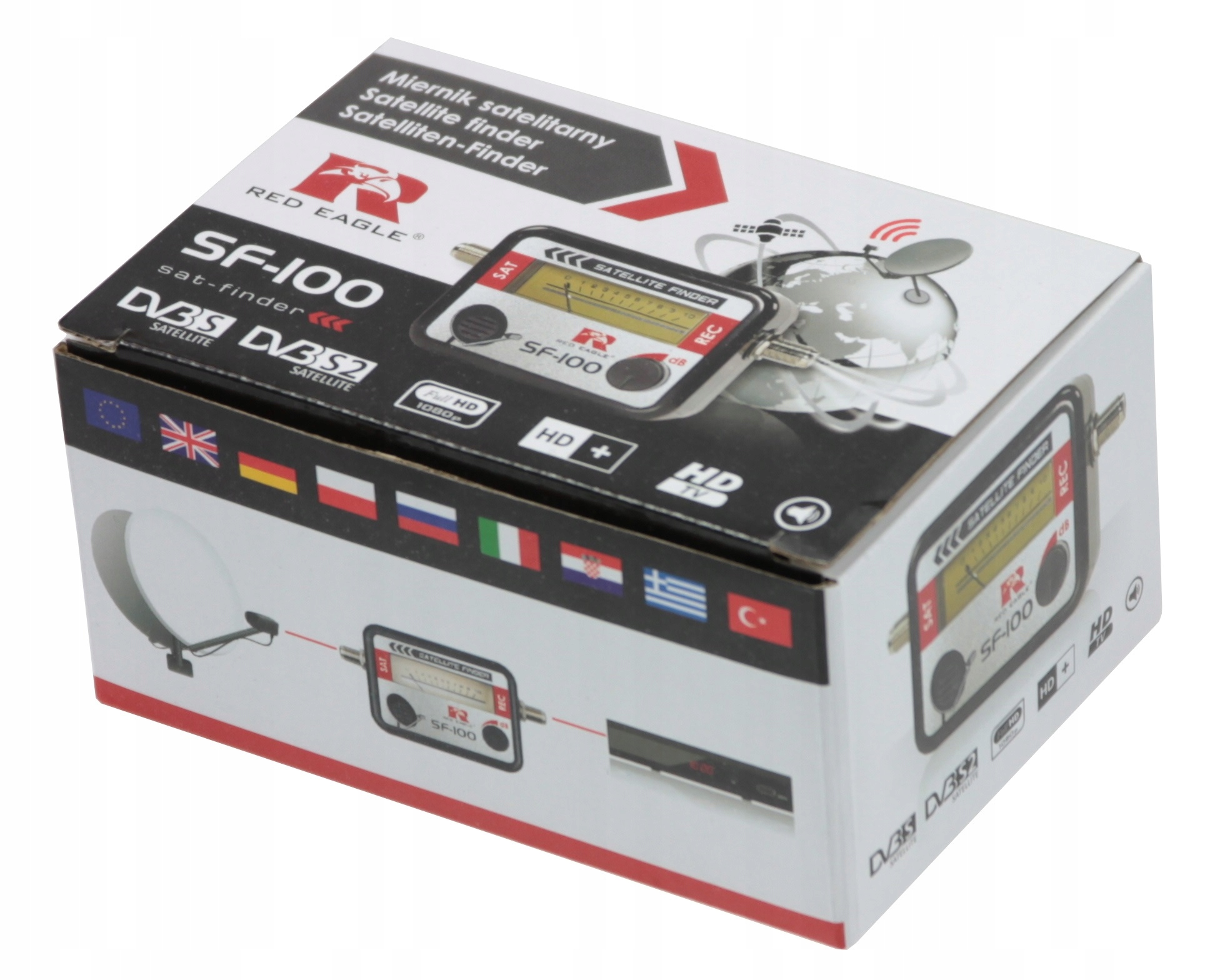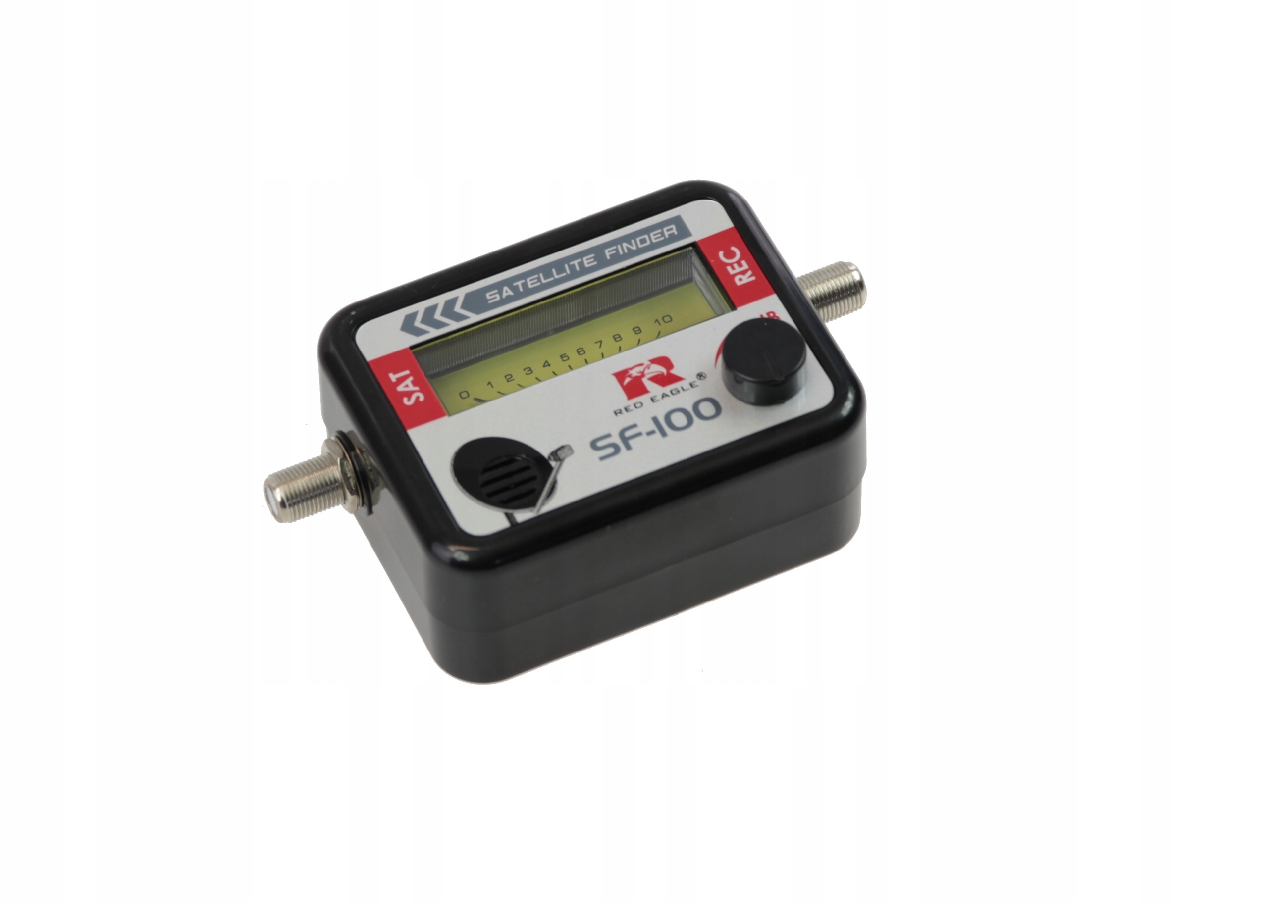 Пристрій не потребує батарейок, завжди готовий до використання. Вимірювач Red Eagle SF-100 оснащений індикатором рівня сигналу і звуковим сигналом, що сприяє точному і швидкому регулюванню положення супутникової антени. Регульована чутливість, індикатор рівня сигналу з підсвічуванням і невеликий компактний дизайн вимірювача забезпечують зручне та інтуїтивно зрозуміле управління.