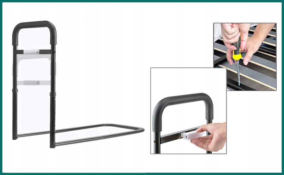 Поставляється частково зібраним, тому кожен може легко встановити його. Просто з'єднайте труби і прикріпіть поручень до ліжка. Додаткове складання чи інструменти не потрібні.