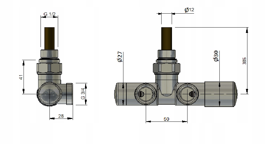 Регулювальний клапан UNICO із занурювальною трубою з відстанню підключення 50 мм ЛІВОВОРУ (справа за бажанням ЗАМОВНИКА) чорного матового кольору + з’єднувачі для монтажу Pex 16 мм або Мідна установка 15 мм (за бажанням замовника) + набір маскування.