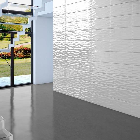 Об'ємна структура декоративної поверхні найкраще представить свою красу на великих поверхнях у вітальнях і холах, але не менш цікаво вони виглядатимуть на кухні чи у ванній.