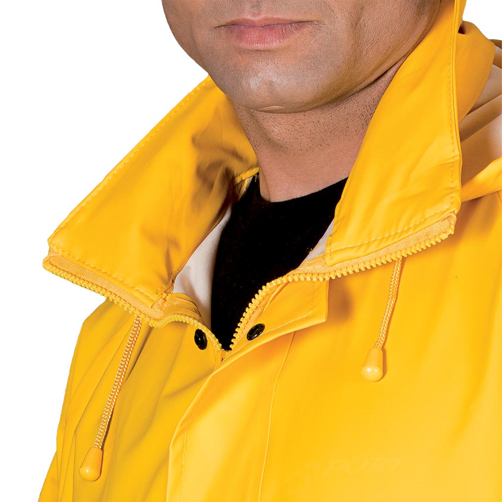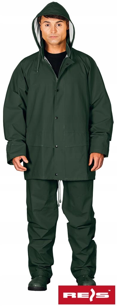 - куртка: застібка на блискавку з додатковим фіксатором щільно закриває щілини на блискавці від дощу та вітру. Капюшон на шнурку захований у комір. Дві великі кишені в нижній частині куртки зі складками, щоб в них не потрапляла вода. З внутрішньої сторони рукава, оброблені манжетом, чудово захищають від вітру. Шнурок внизу куртки. Система вентиляції на спині та під пахвами забезпечує необхідну циркуляцію повітря.