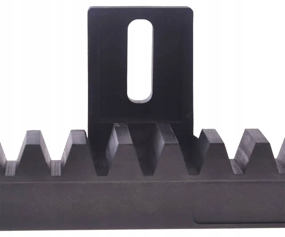 Пластикова зубчаста рейка для відкатних воріт – L1010 х 18 мм (до 600 кг) Пластикова зубчаста рейка зі сталевим сердечником для самонесучих відкатних воріт довжиною 1010 мм, шириною 18 мм. У набір входять саморізи з шайбами для легкого кріплення.