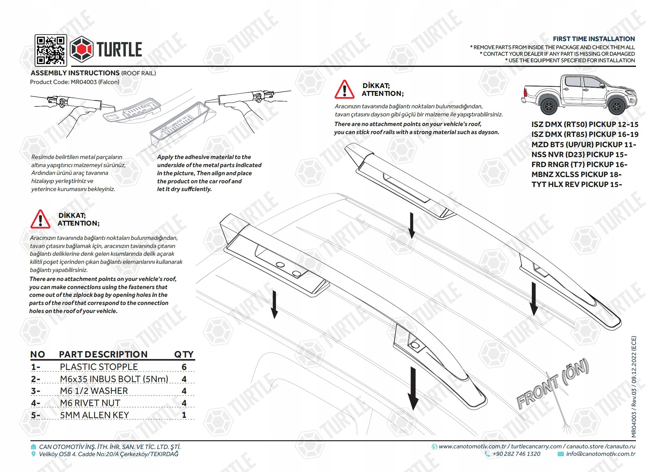 Рейлінги Turtle Falcon Black можна прикріпити до автомобіля двома способами: