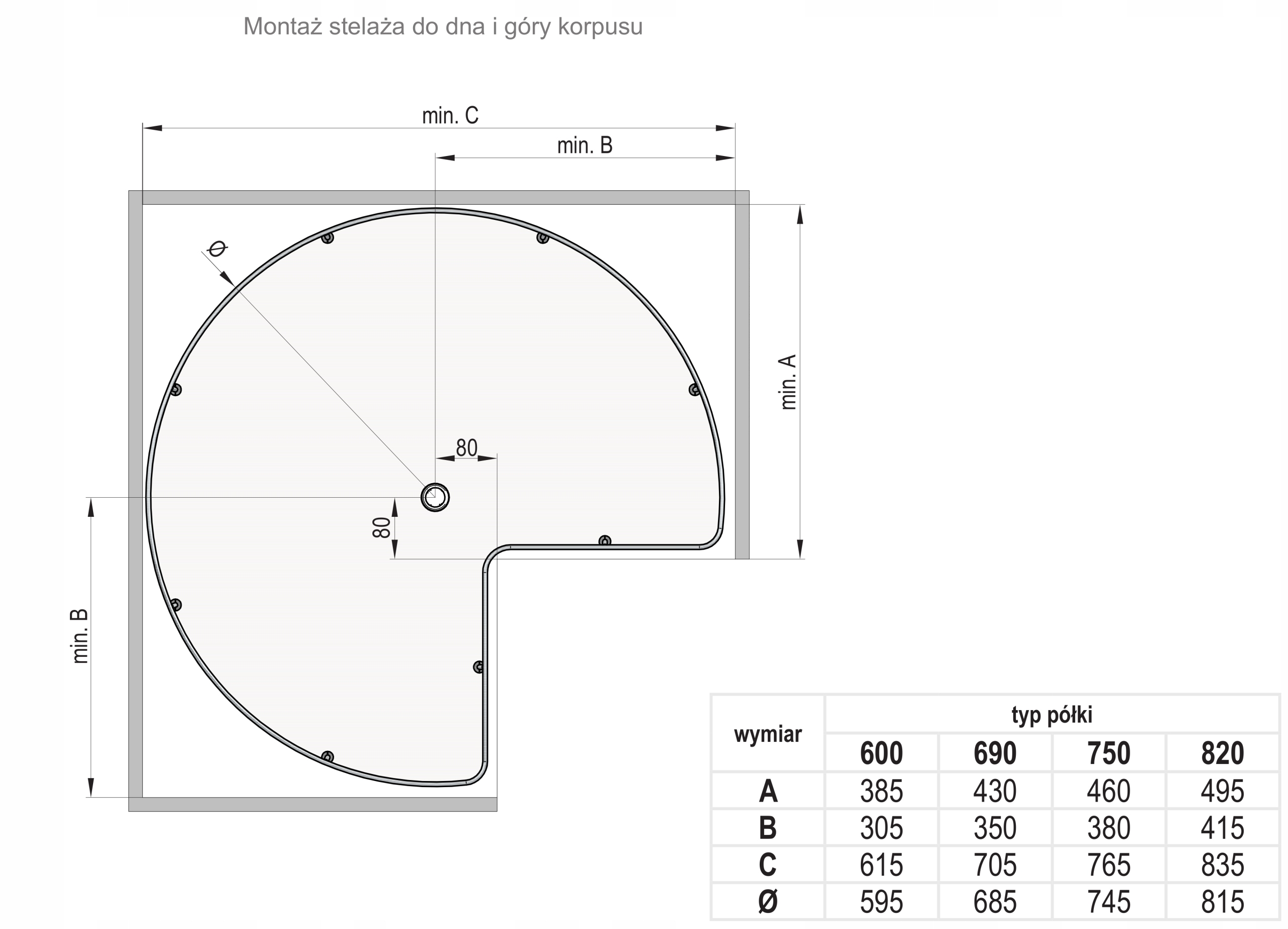 REJS 3/4 кутова поворотна полиця 745 сірий гальмо