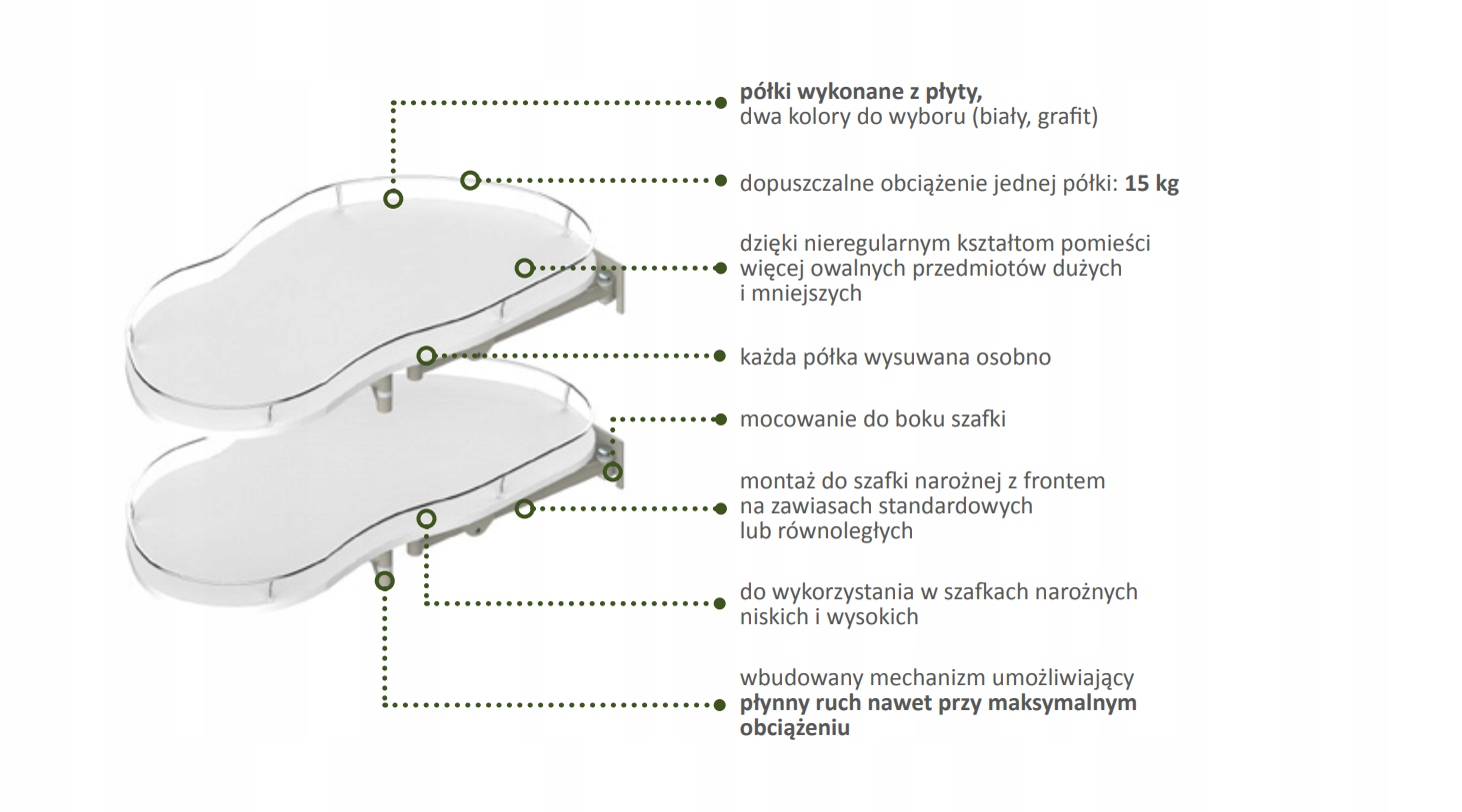 Кутова полиця типу "нирка" - сучасне рішення для кухонних кутових шаф.