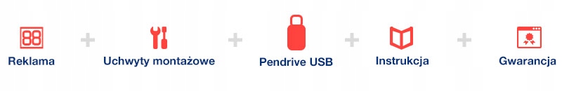 Світлодіодна реклама оснащена кабелем з роз'ємом USB. Стандартний кабель має довжину 5 метрів. Завантаження вмісту передбачає завантаження попередньо підготовленого вмісту (за допомогою програмного забезпечення, що входить до комплекту) на USB-накопичувач, а потім підключення його до кабелю з USB-портом у рекламі на кілька секунд. Потім ми дістаємо флешку, і підготовлений вміст з’явиться в оголошенні.