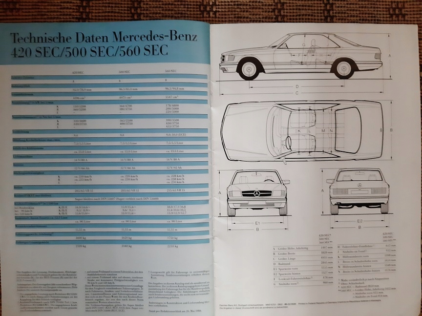 рекламна брошура - Mercedes-Benz 420 SEC, 800 SEC, 560 SEC Coupe 1986 р.