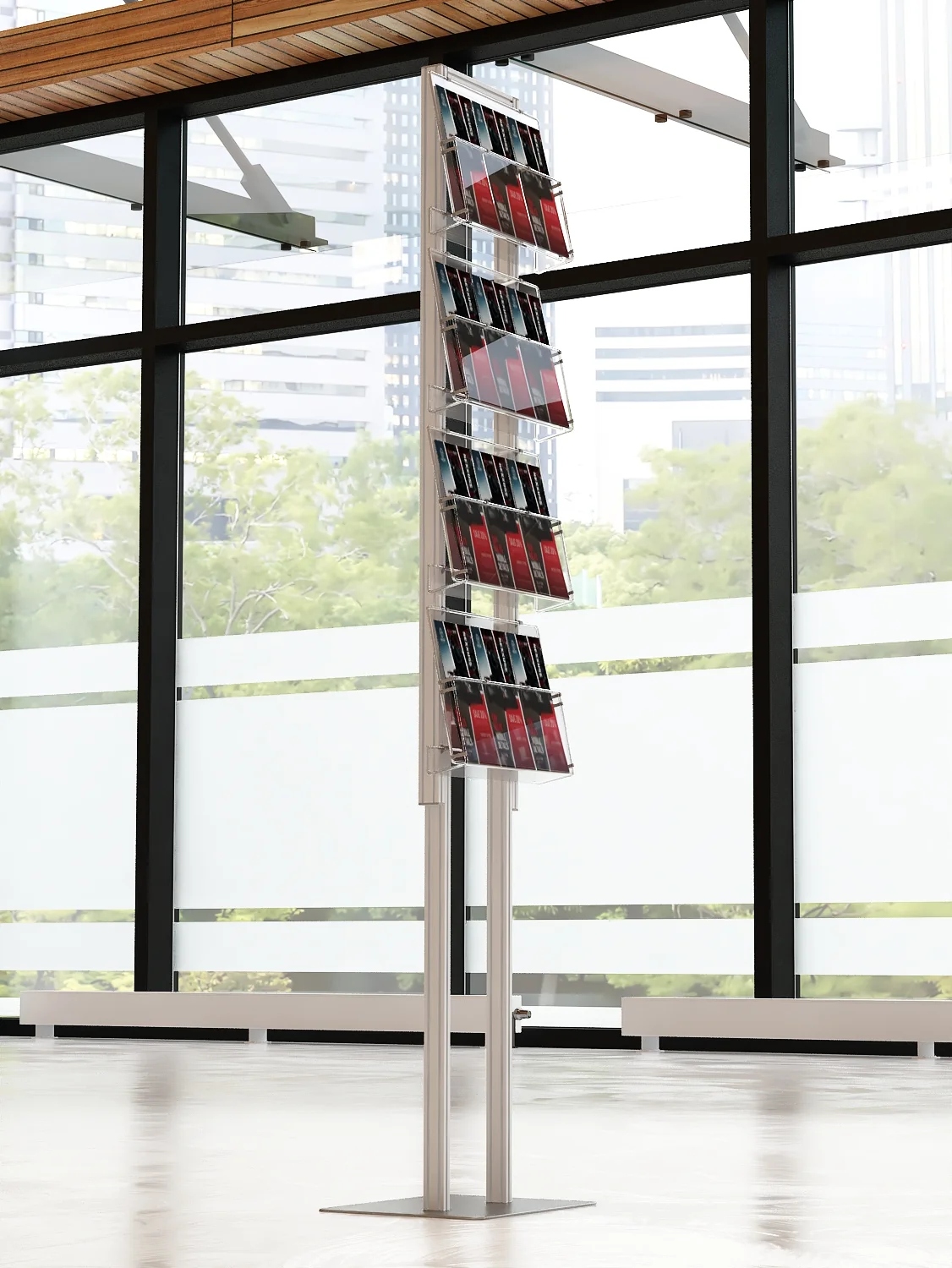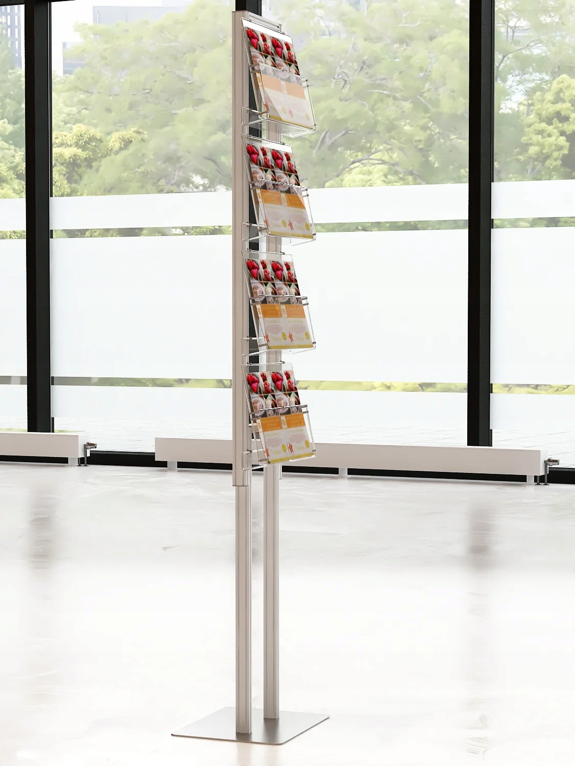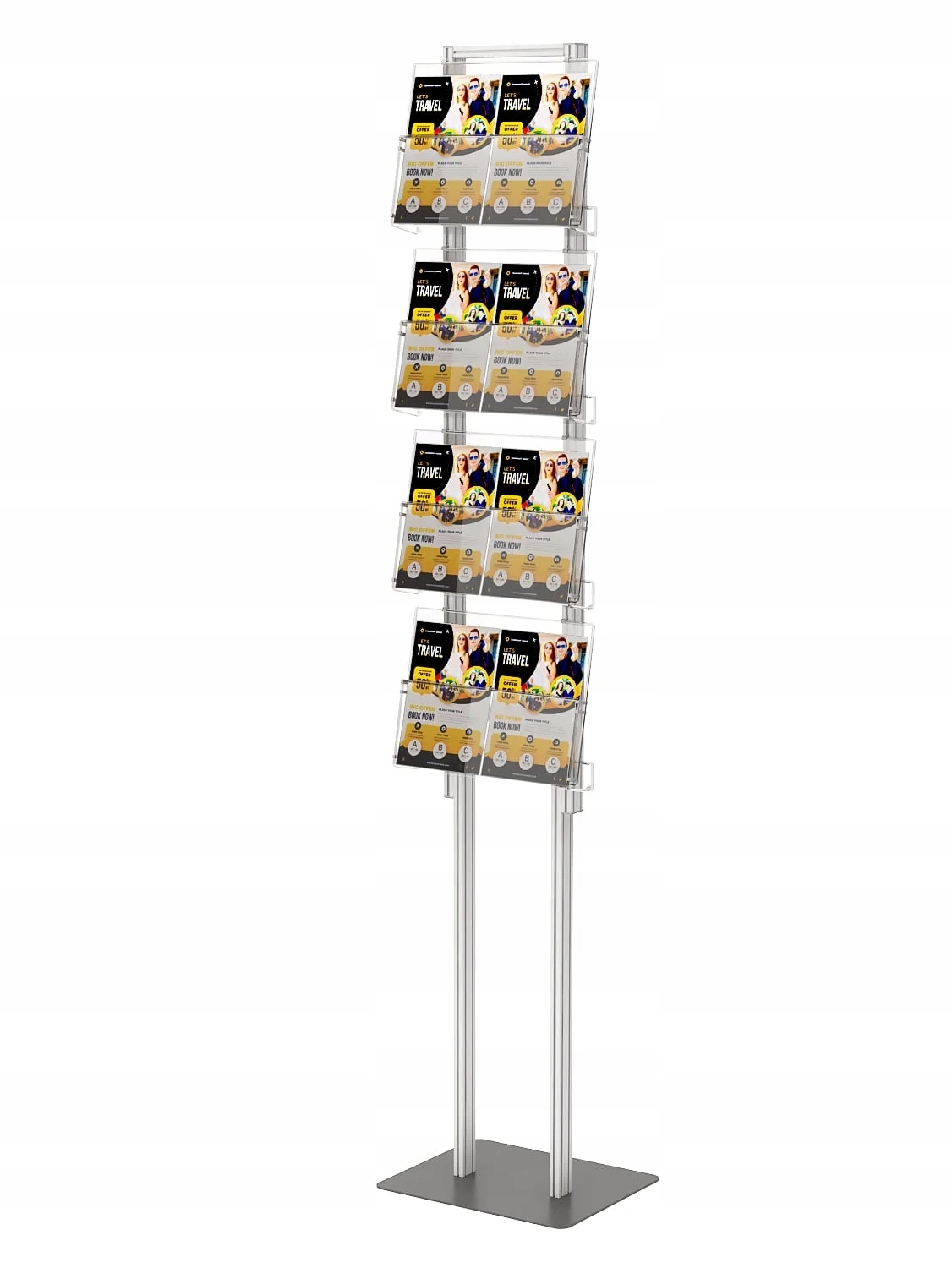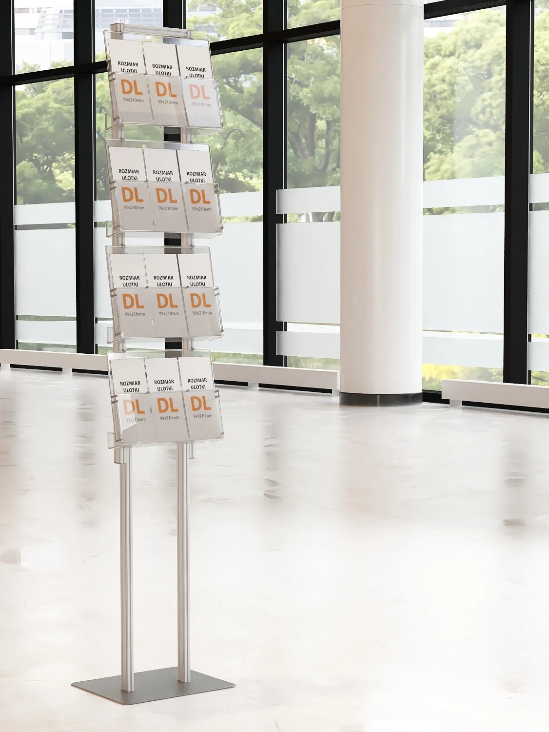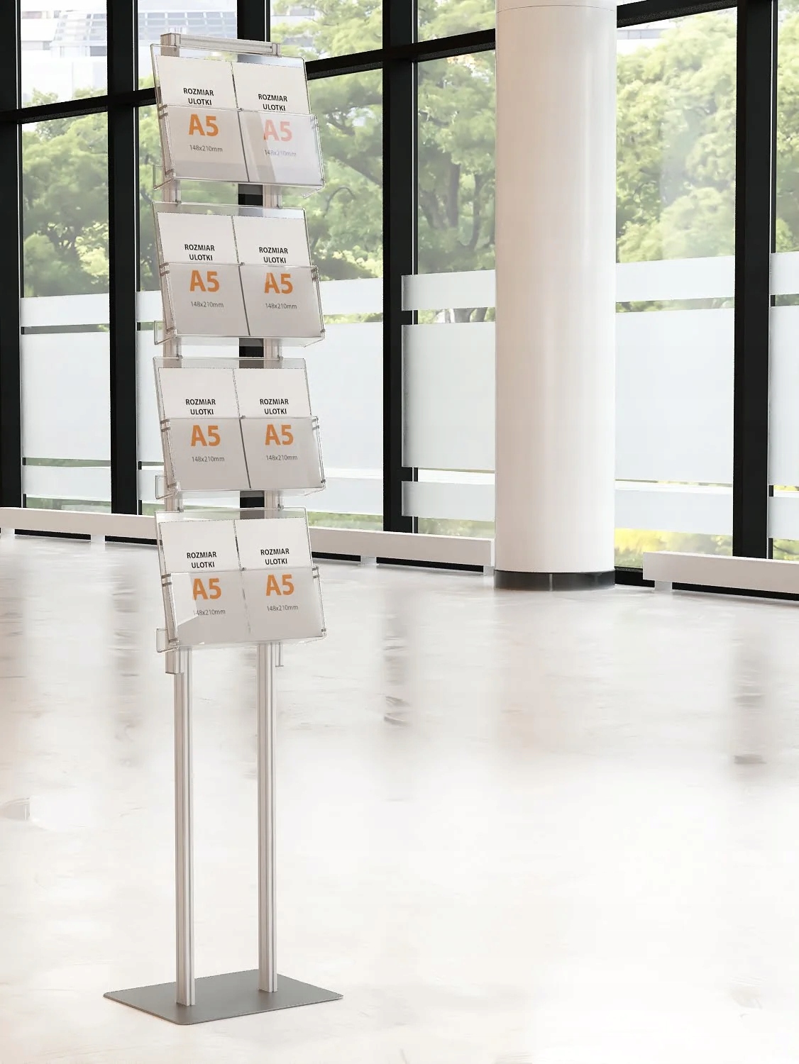 Найважливішою особливістю цієї підставки є чотири кишені, які дозволяють демонструвати різні типи листівок і брошур. Ці кишені підходять для листівок форматів A4, A5 і DL, що дає вам повну свободу у виборі рекламних матеріалів.
