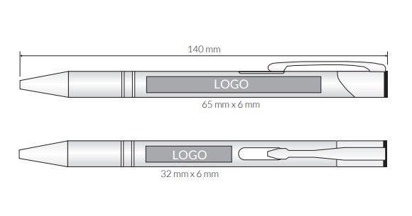 Пропозиція поширюється на 50 штук ручок з однаковим гравіюванням одного кольору та гравіюванням на одній стороні ручки. Поля для розміщення гравіювання представлені на фото нижче. Гравірування завжди біле/світло-сіре.