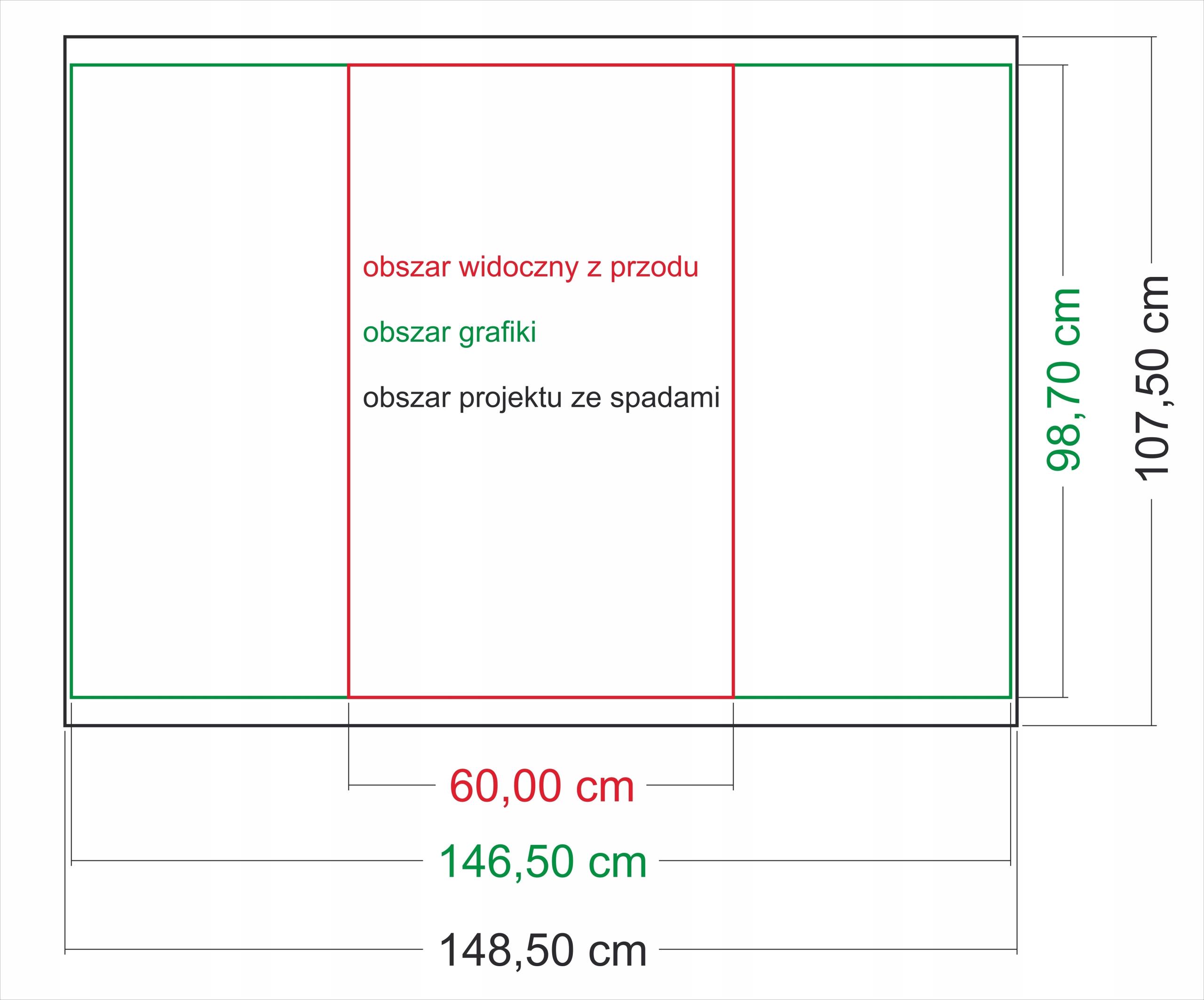- Зона з обрізами - 148,5 см в ширину x 107,5 см у висоту