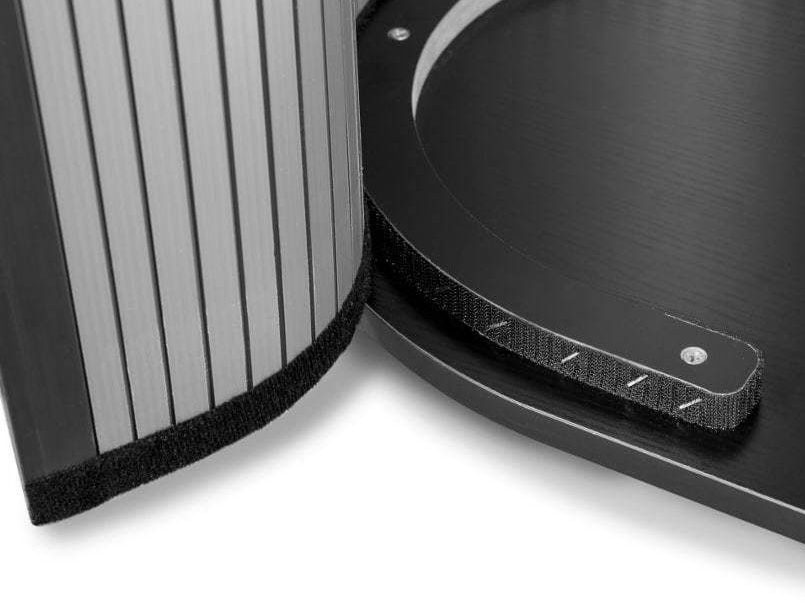 Стінки цієї системи виготовлені з пористого ПВХ, які кріпляться до стільниці та основи за допомогою липучок. Завдяки такій простій конструкції складання і розкладання підставки не вимагає використання інструментів і займає буквально мить. Дерев'яна основа і міцний дерев'яний верх гарантують високу якість, стійкість і тривале використання цього виробу.