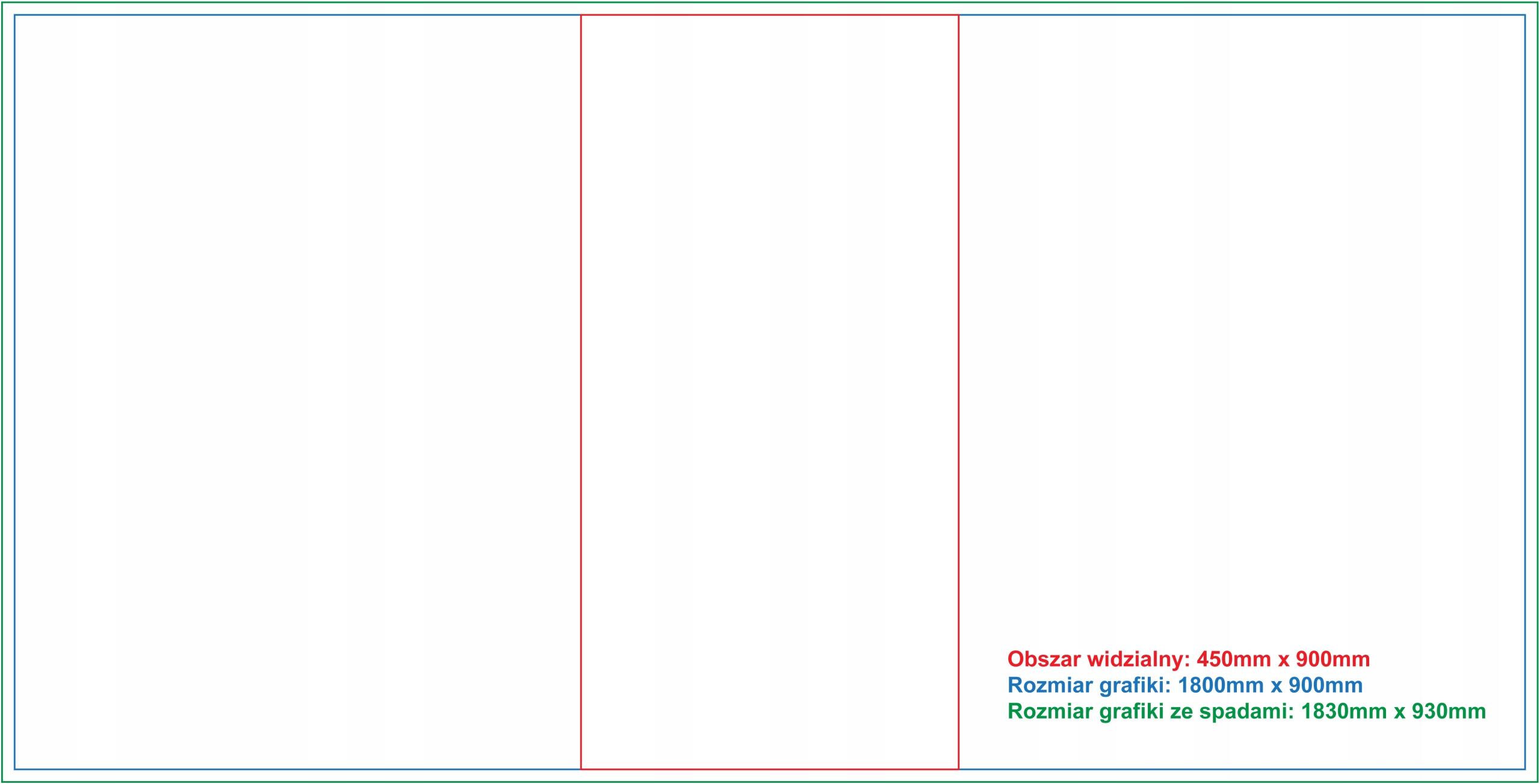 - Кольори: CMYK, дизайнерські розміри з обрізом 1830 x 930 мм, графічні розміри 1800 x 930 мм, видима область 450 x 900 мм
