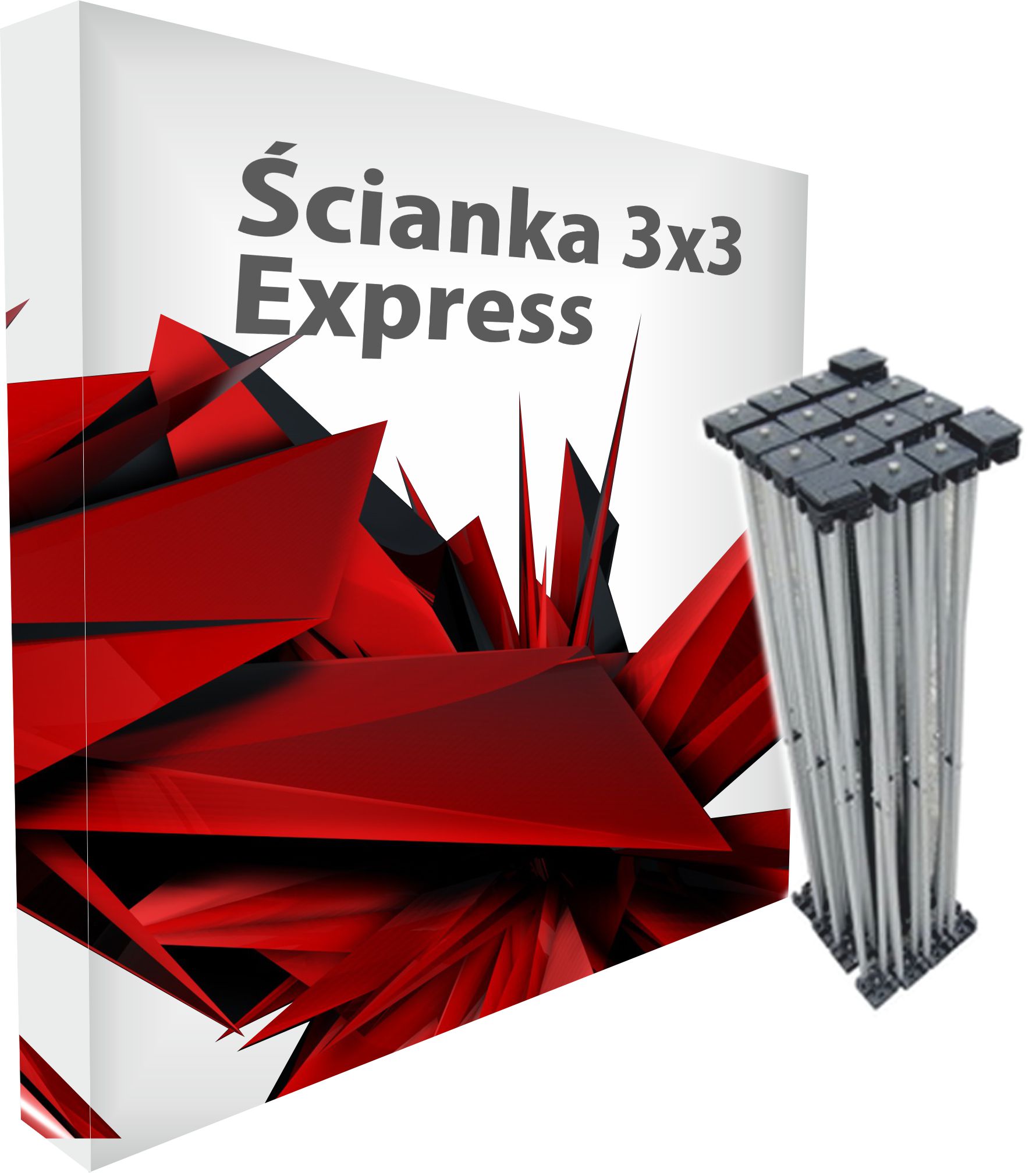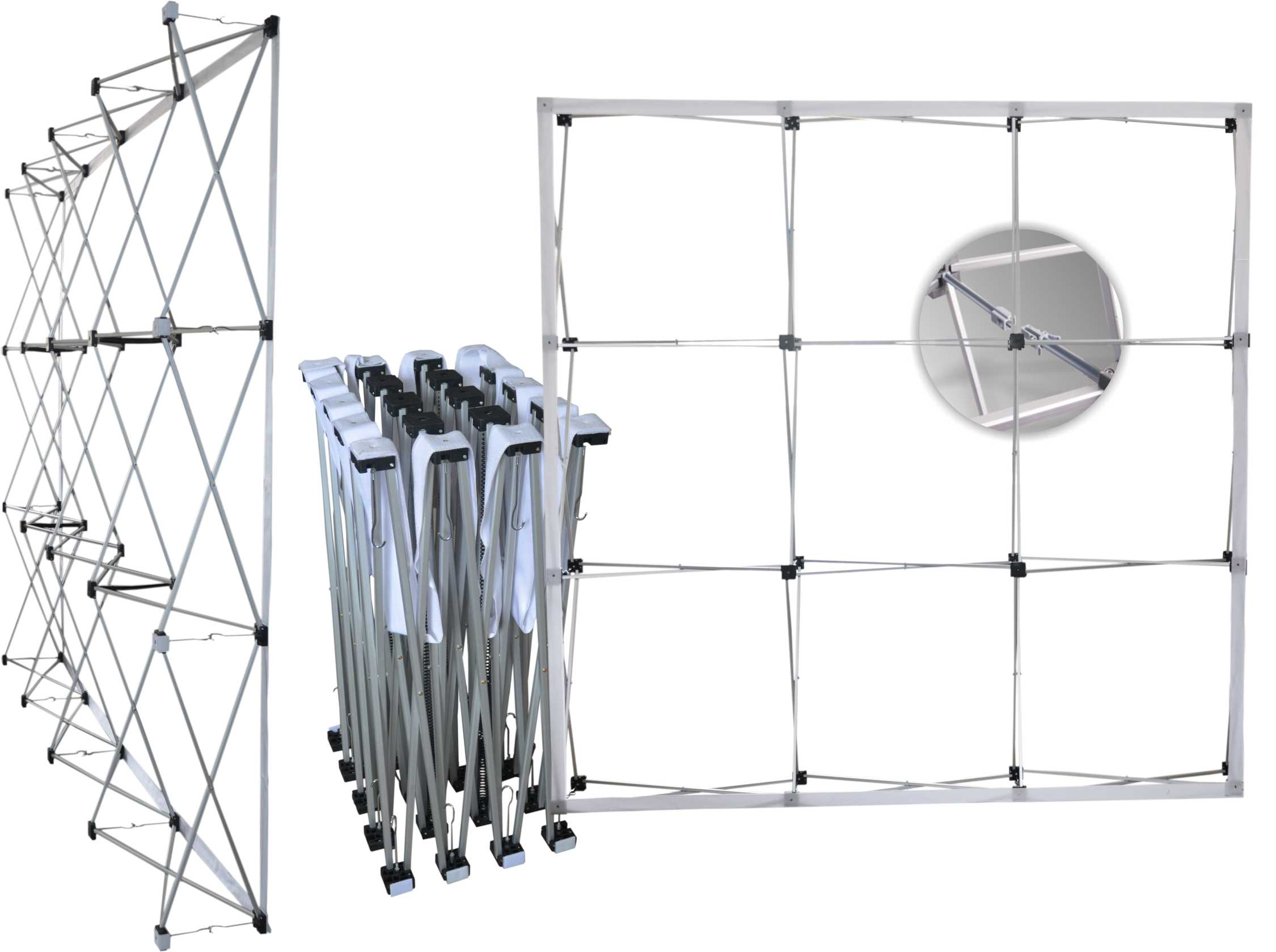 Велика складана рекламна стіна Express 224x224 см типу Pop-Up з друкованими сторонами.