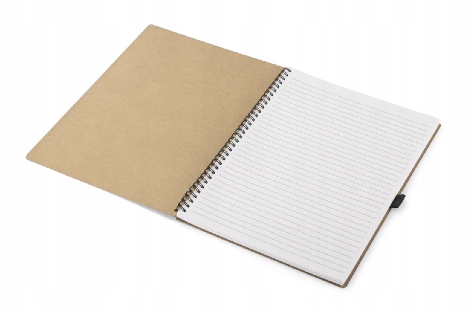Класичний блокнот на спіралі в коричневій паперовій обкладинці з місцем для ручки. Сторінки в зошиті зроблені з кам'яного паперу. Цей папір надзвичайно міцний і стійкий до вологи. Розліновані аркуші паперу.