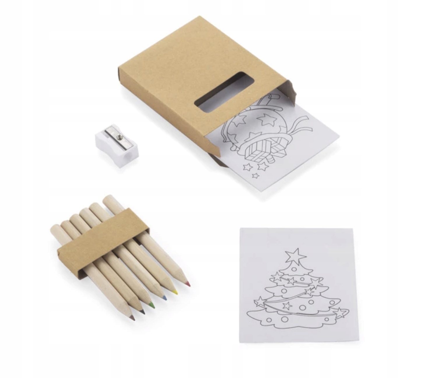 Набір складається з 6 кольорових олівців, точилки та 2 різдвяних книжок-розмальовок.